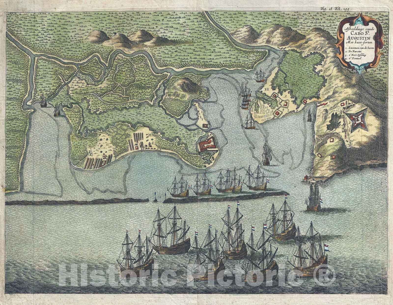 Historic Map : Bird's Eye View Cabo de Santo Agostinho, Brazil, Jansson, 1656, Vintage Wall Art