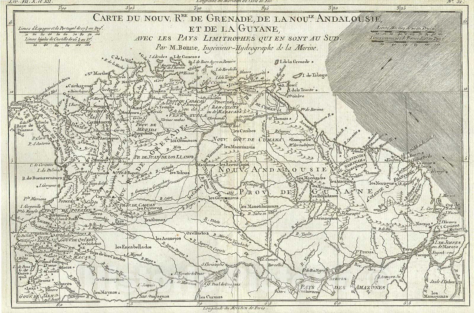 Historic Map : Bonne Map of Northern South America, Columbia, Venezuela, Brazil, 1780, Vintage Wall Art