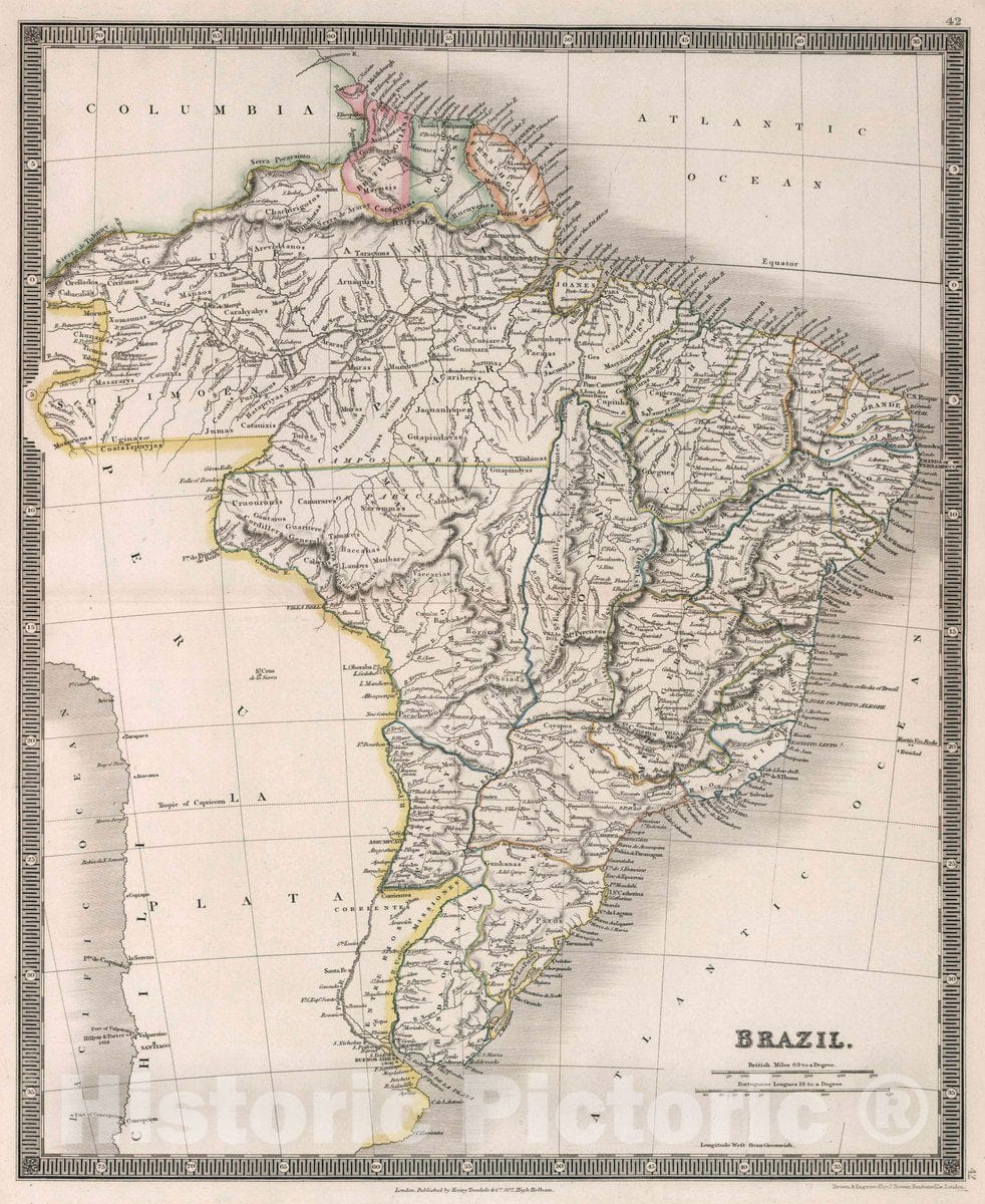 • .Historic Map : Brazil. Drawn & Engraved by J. Dower. London, Published by Henry Teesdale & Co, 1836 Atlas - Vintage Wall Art