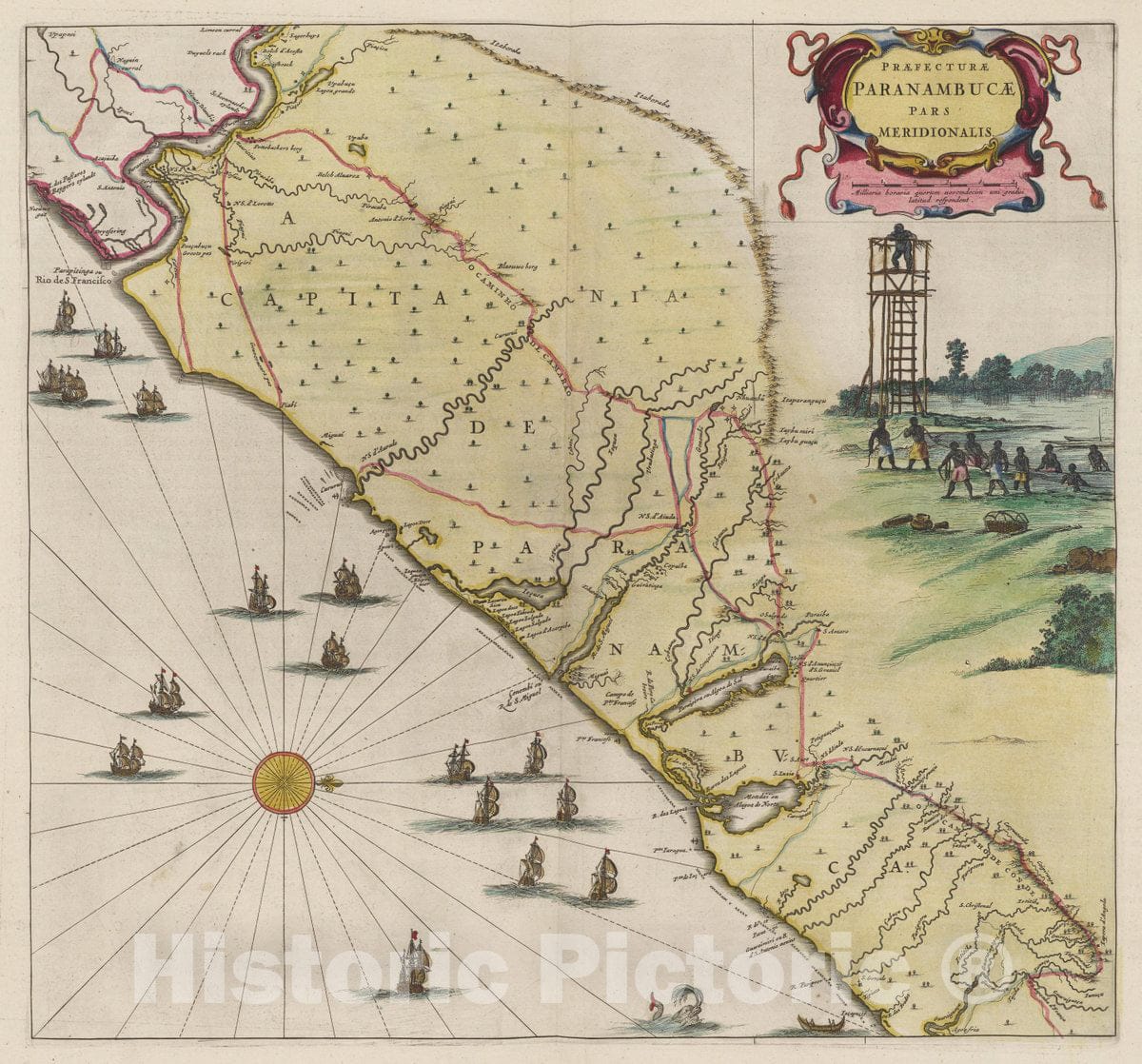 • .Historic Map : Brazil, Penambuco Region (Brazil) Praefecturae Paranambucae Pars Meridionalis, 1665 Atlas , Vintage Wall Art