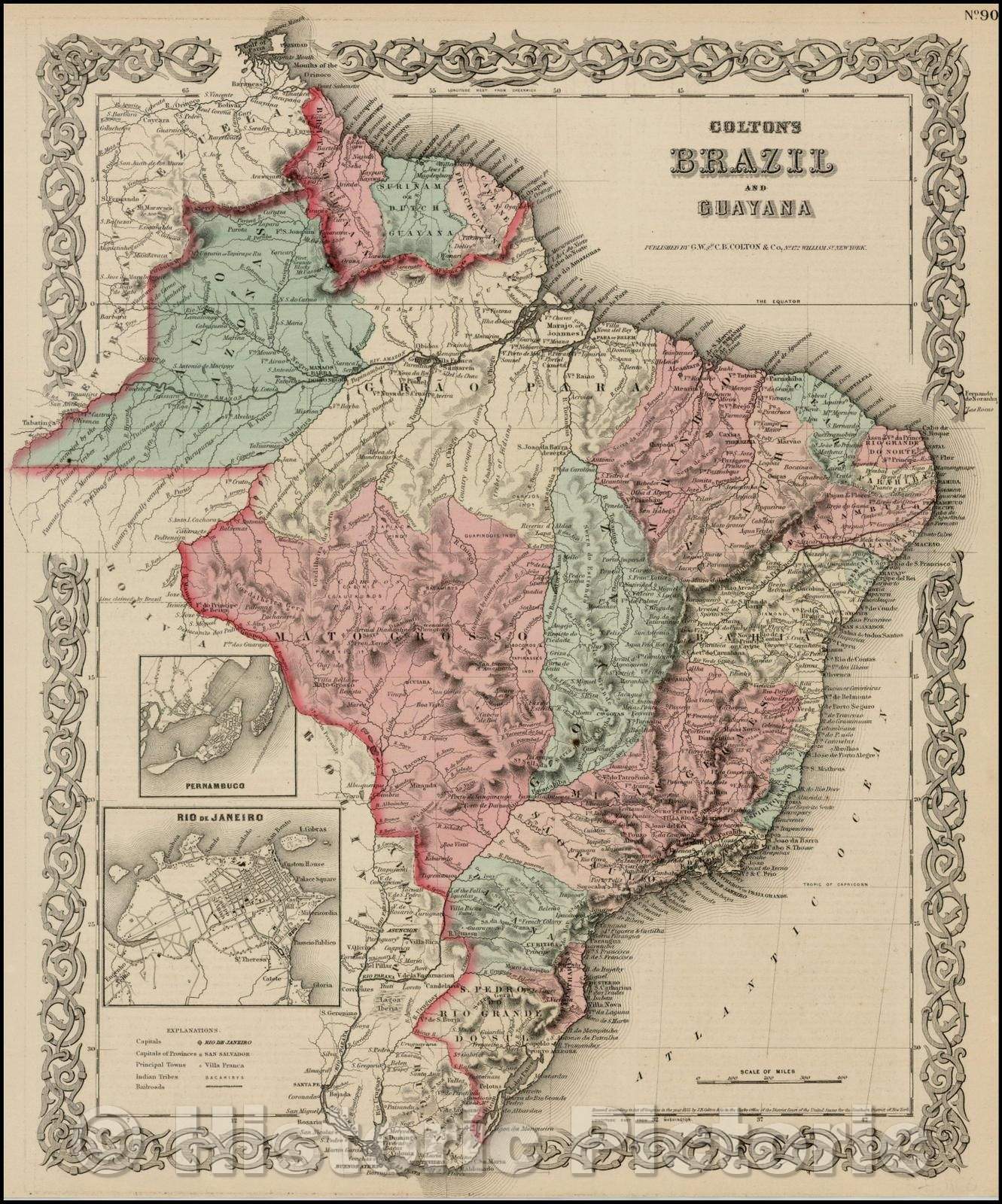 Historic Map - Colton's Brazil and Guayana, 1865, Joseph Hutchins Colton - Vintage Wall Art