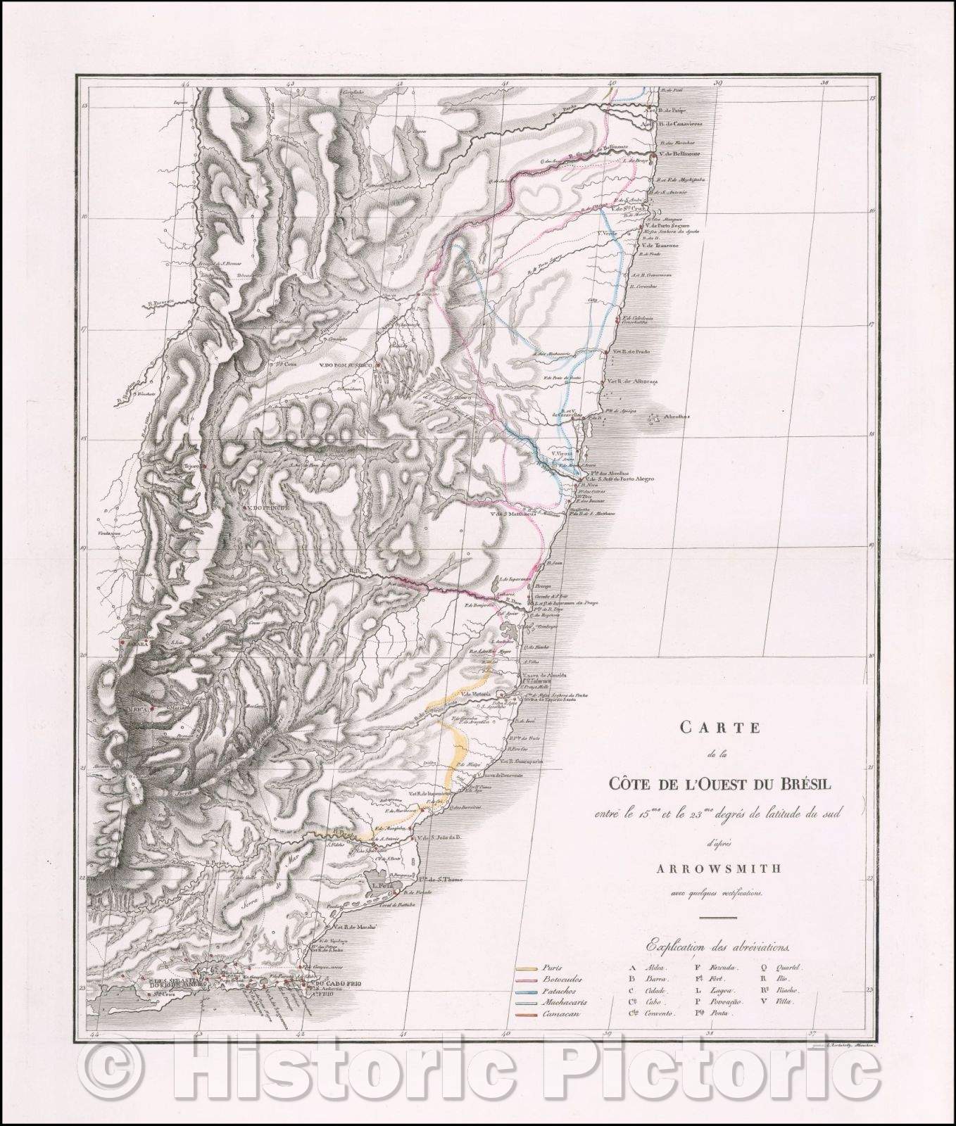 Historic Map - Cote de l'Ouest du Bresil entre le 15? et le 13? degr?de lati :: of the West Coast of Brazil between 15? and 13? latitude South of Arrow, 1822 - Vintage Wall Art