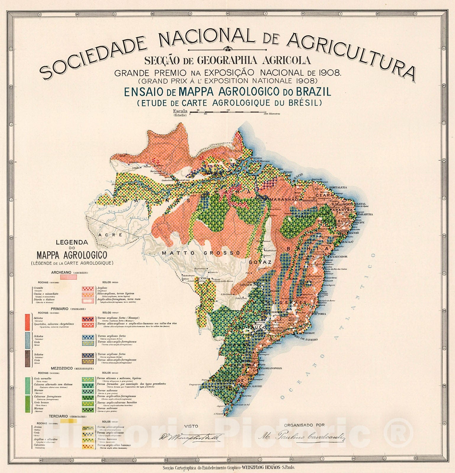Historic Map : Ensaio de mappa agrologico do Brazil (Etude de carte agrologique du Bresil), 1908, Vintage Wall Decor