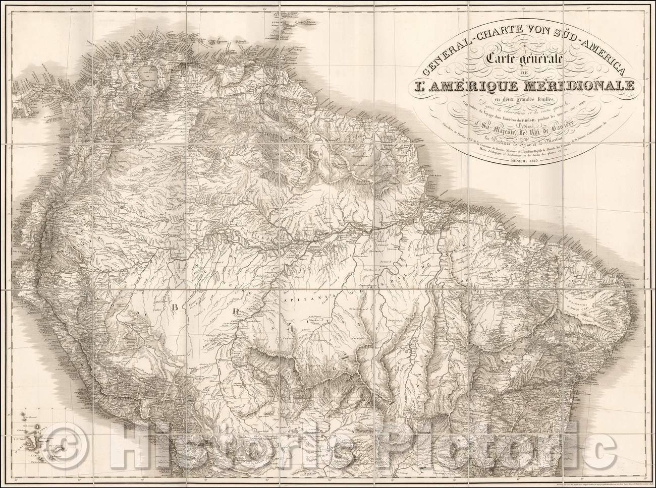 Historic Map - Generale-Charte Von Sud-America - Carte Generale De L'Amerique Meridionale en deux/South Amreica, Northern Brazil and the Amazon, 1825 - Vintage Wall Art