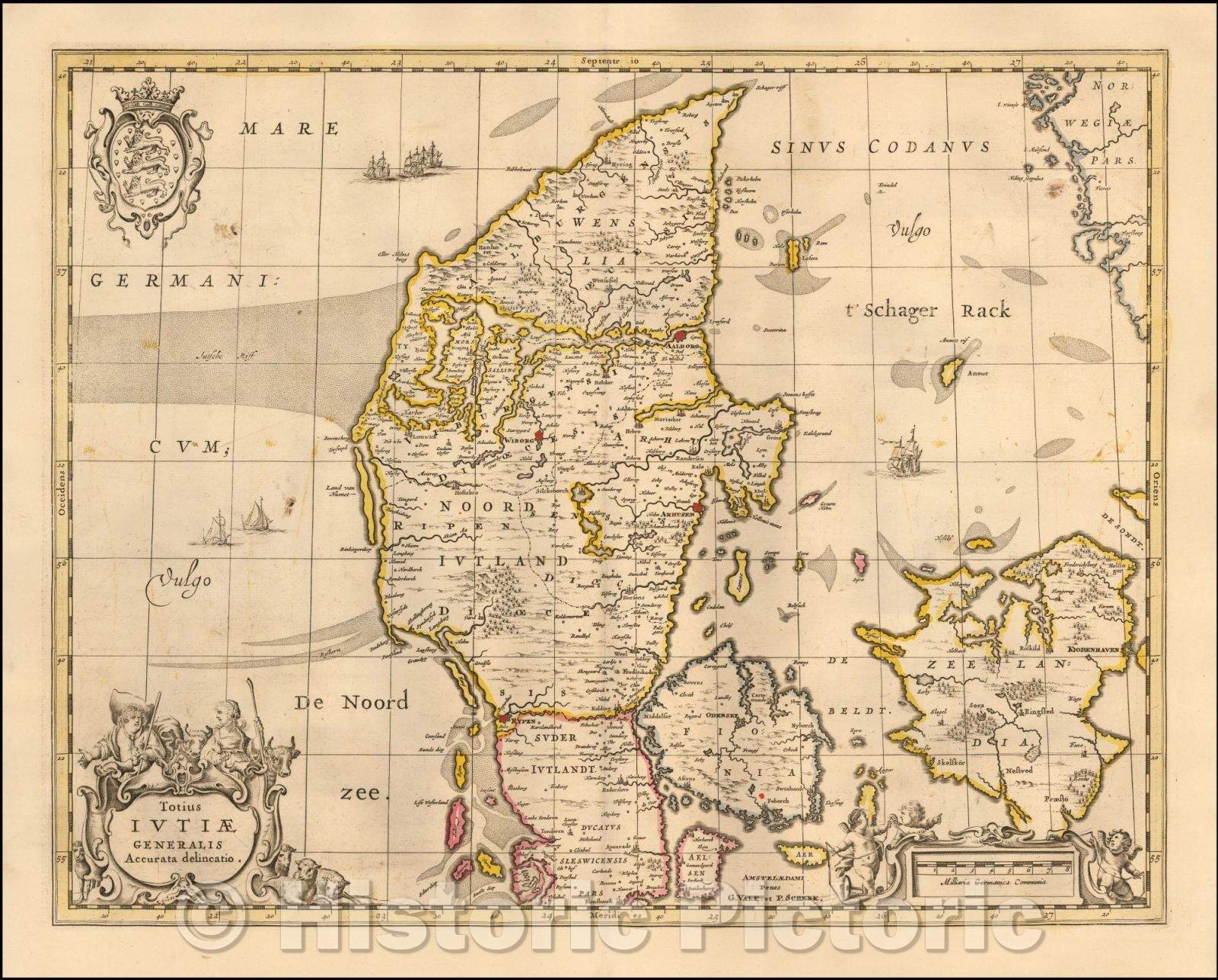 Historic Map - Totius Iutiae Generalis Accurata Delineatio/North Jutland exactly Brazil, 1690, Peter Schenk - Vintage Wall Art