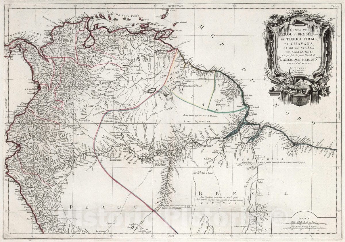 Historic Wall Map : Brazil, , South America 51. Carte du Perou et Bresil Sep. de Terra-Firme, de Guayana, 1779 Atlas , Vintage Wall Art