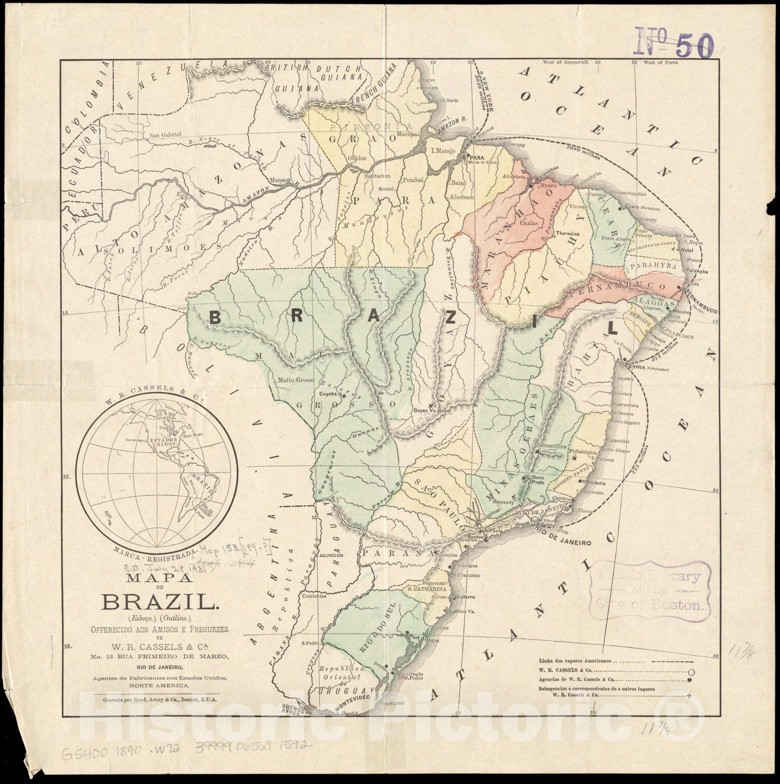 Historical Map, 1890-1899 Mapa do Brazil : (esboco) (outline), Vintage Wall Art
