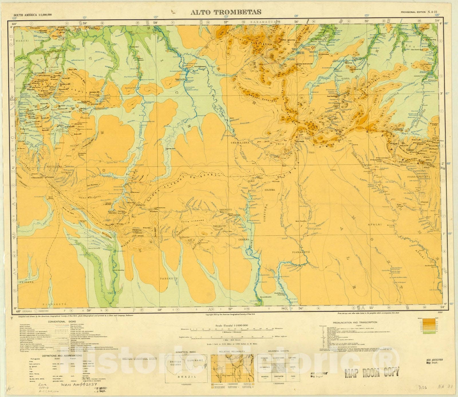 Map : Alto Trombetas, Brazil, British Guiana and Suriname 1930, Map of Hispanic America, Antique Vintage Reproduction