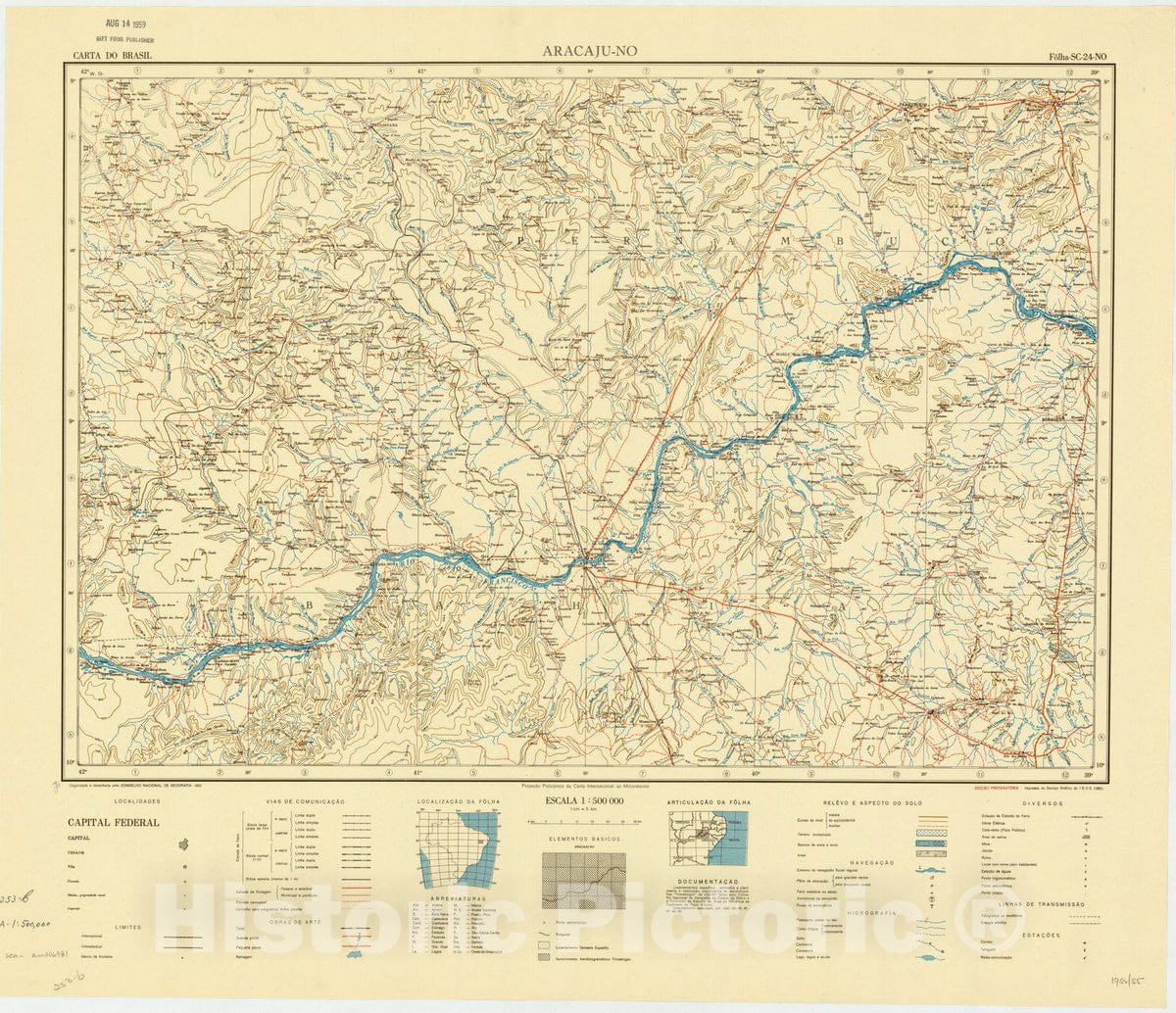 Map : Aracaju - NO, Brazil 1952, Carta do Brasil , Antique Vintage Reproduction