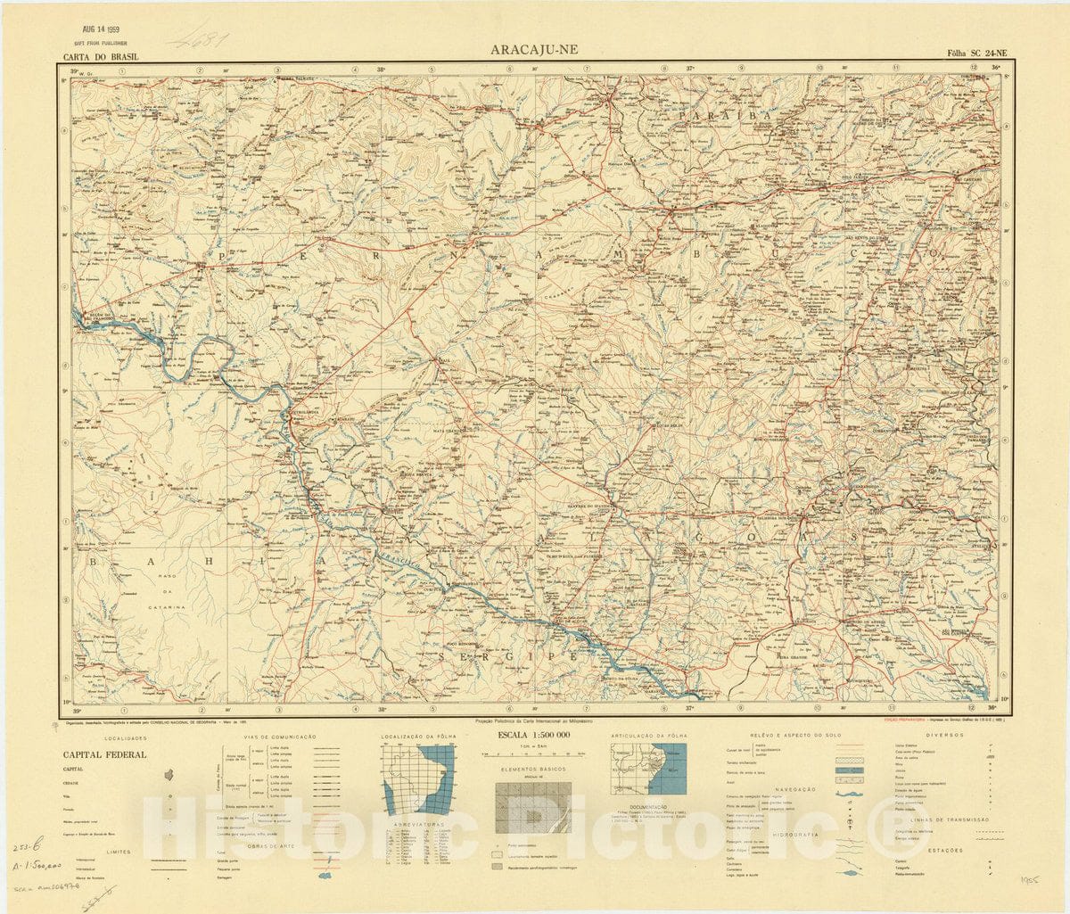 Map : Aracaju - NE, Brazil 1955, Carta do Brasil , Antique Vintage Reproduction