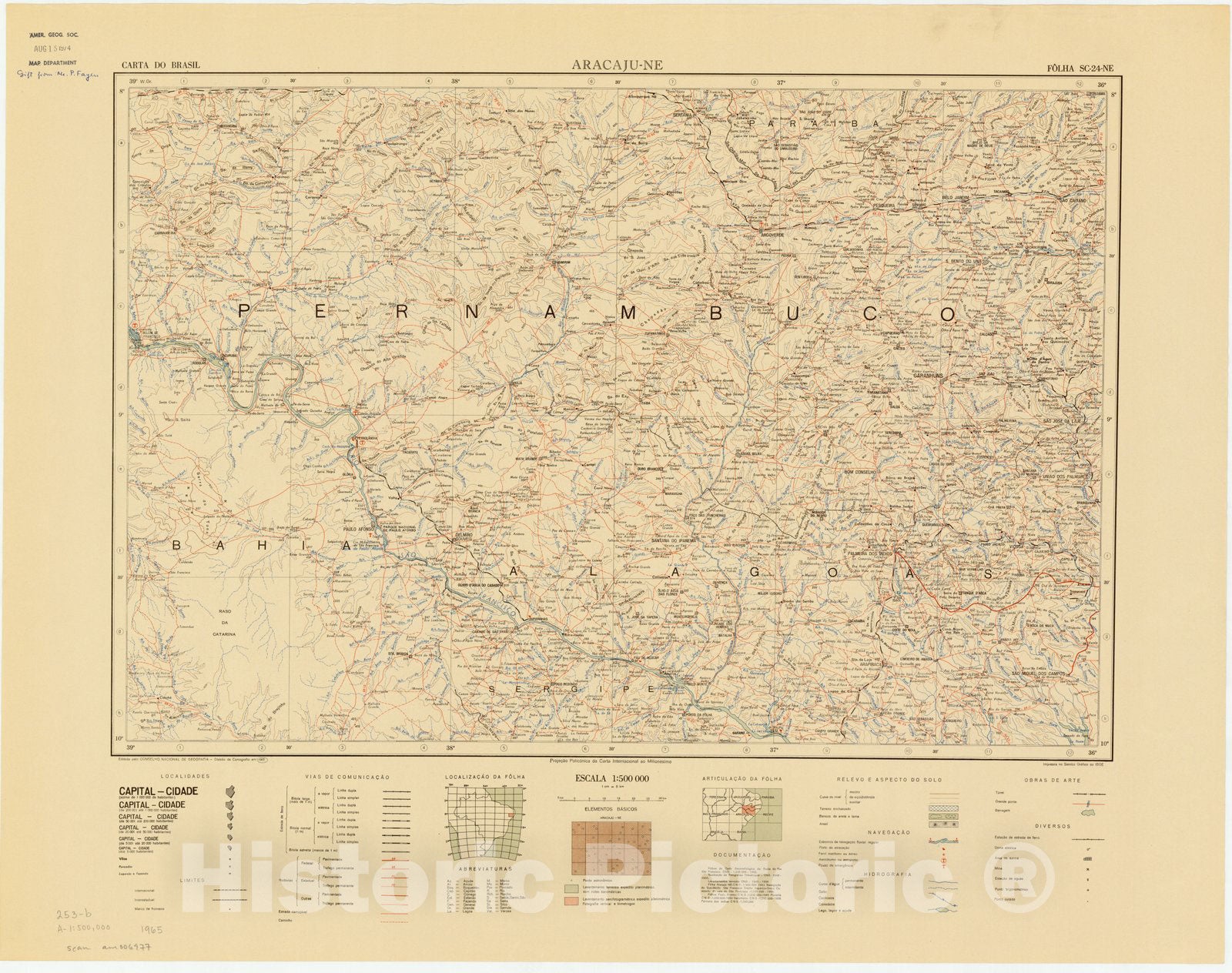 Map : Aracaju - NE, Brazil 1965, Carta do Brasil , Antique Vintage Reproduction