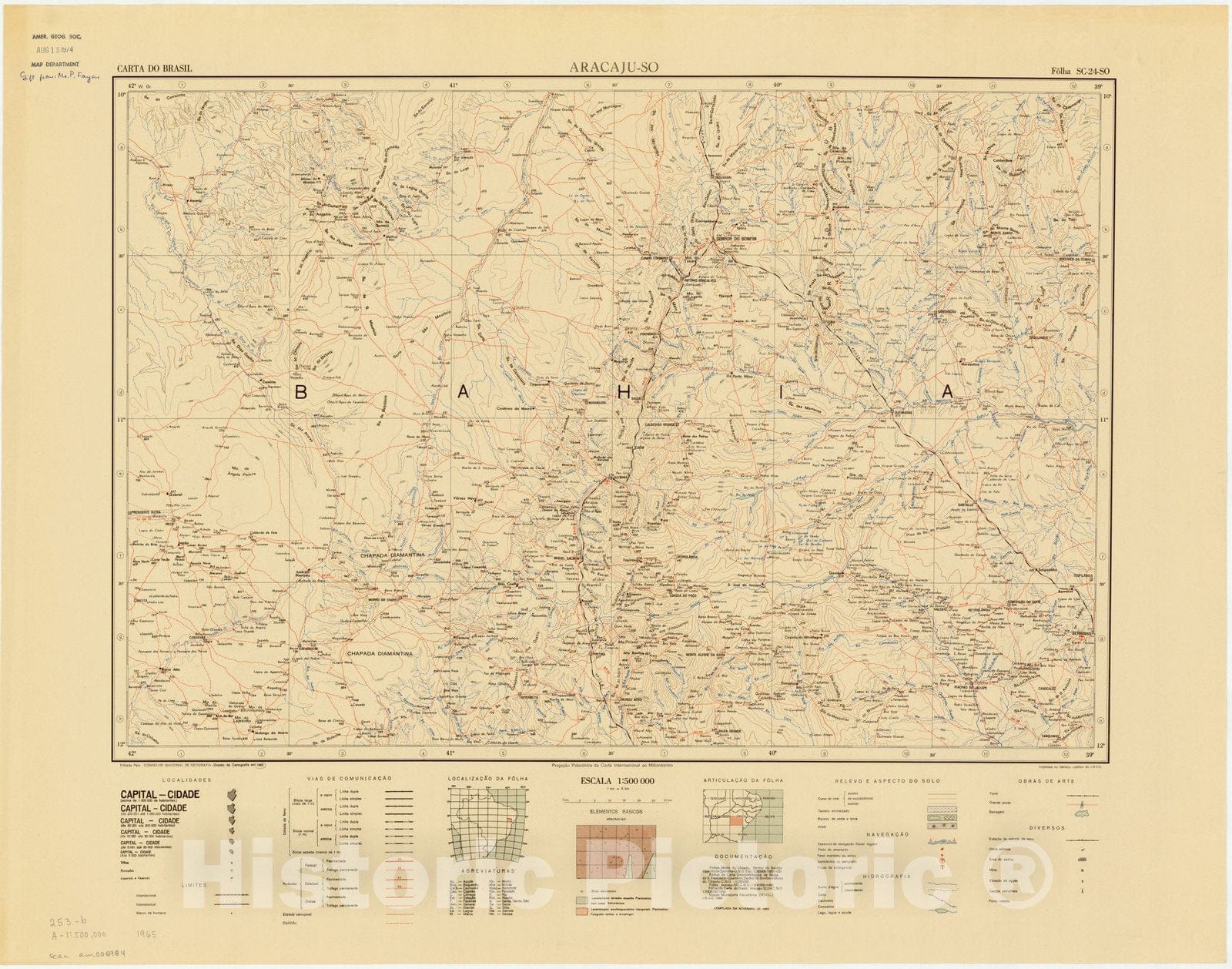 Map : Aracaju - SO, Brazil 1965, Carta do Brasil , Antique Vintage Reproduction