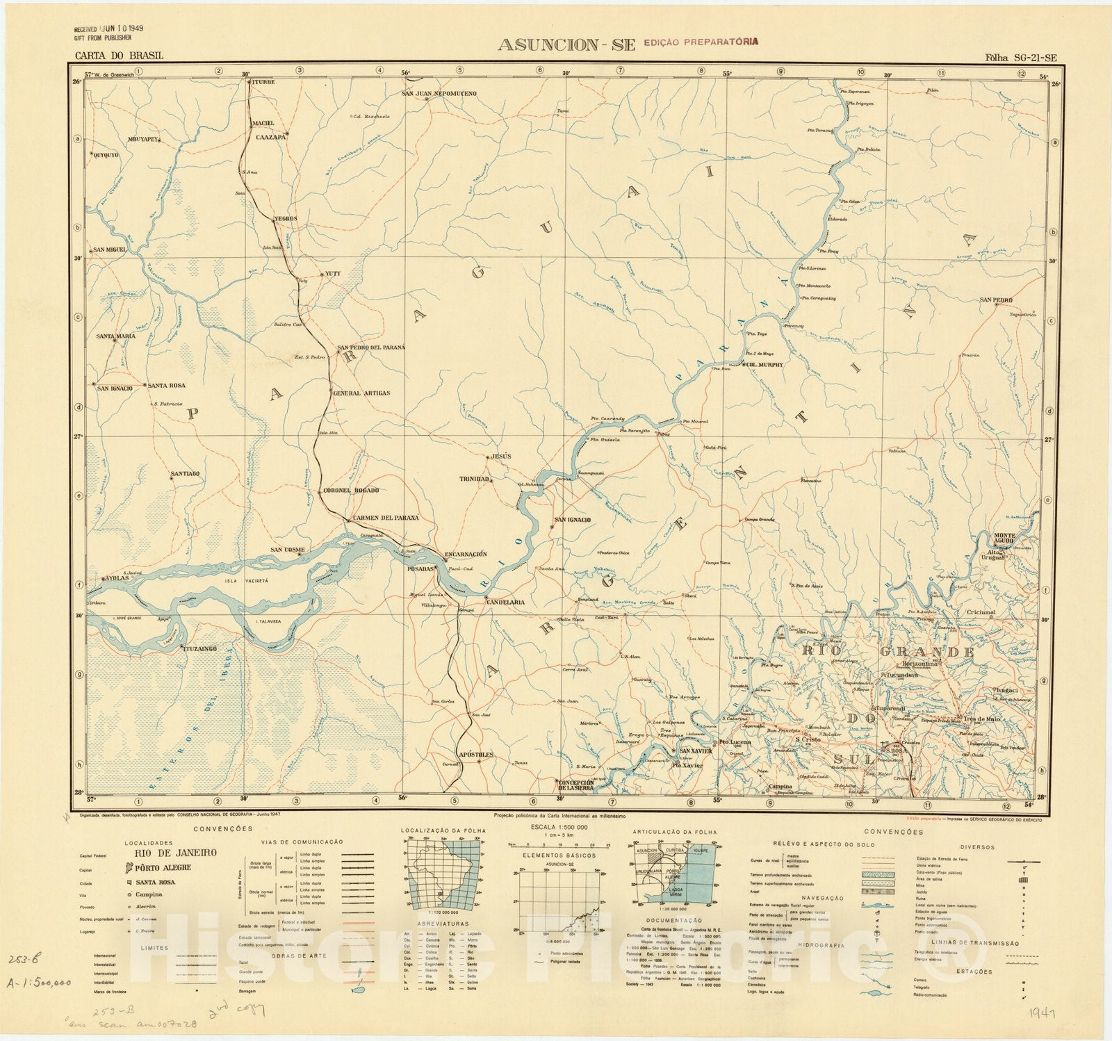 Map : Asuncio - SE, Brazil 1947, Carta do Brasil , Antique Vintage Reproduction