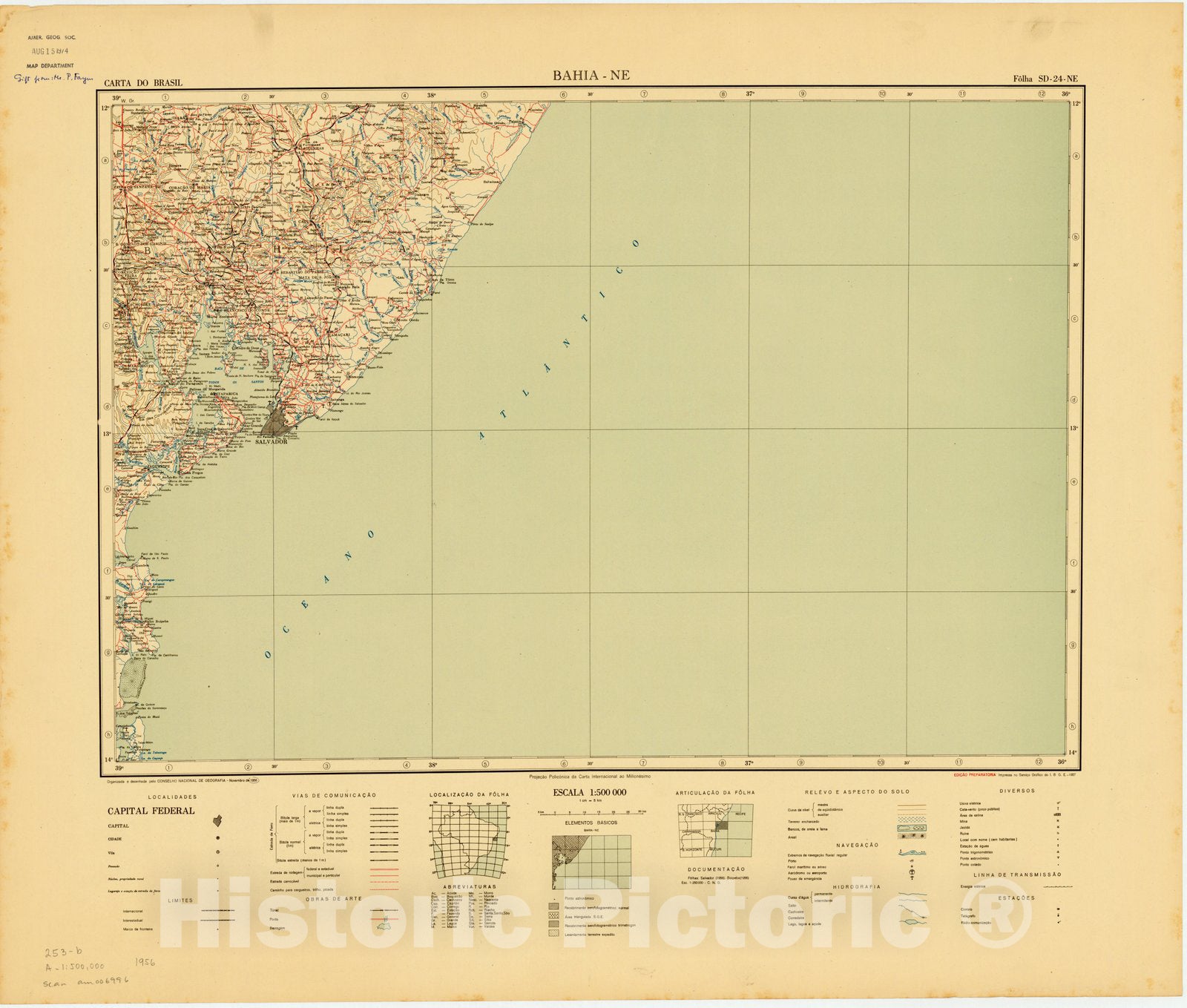 Map : Bahia - NE, Brazil 1956, Carta do Brasil , Antique Vintage Reproduction