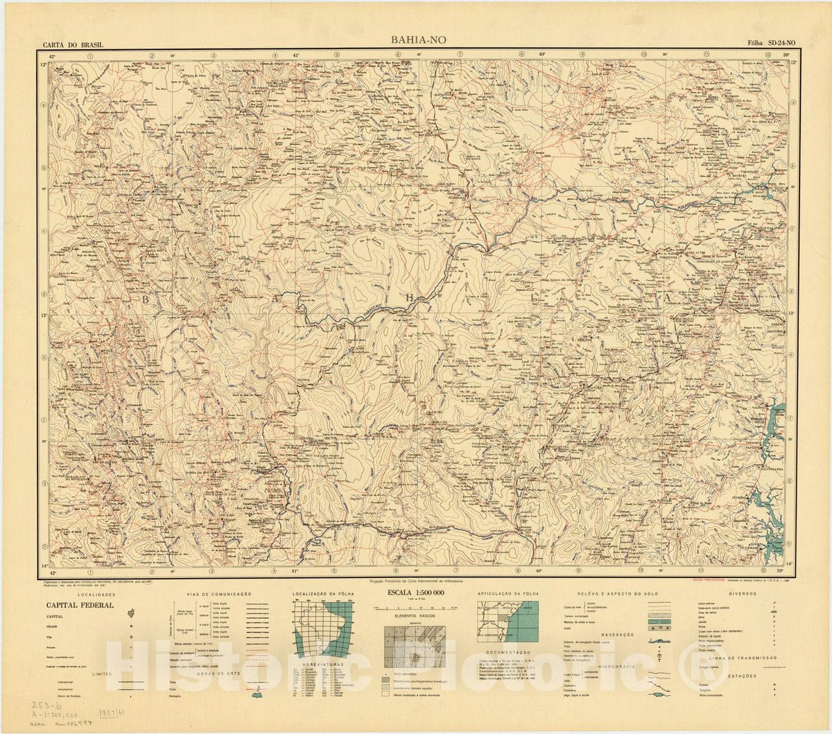 • Map : Bahia - NO, Brazil 1957, Carta do Brasil , Antique Vintage Reproduction
