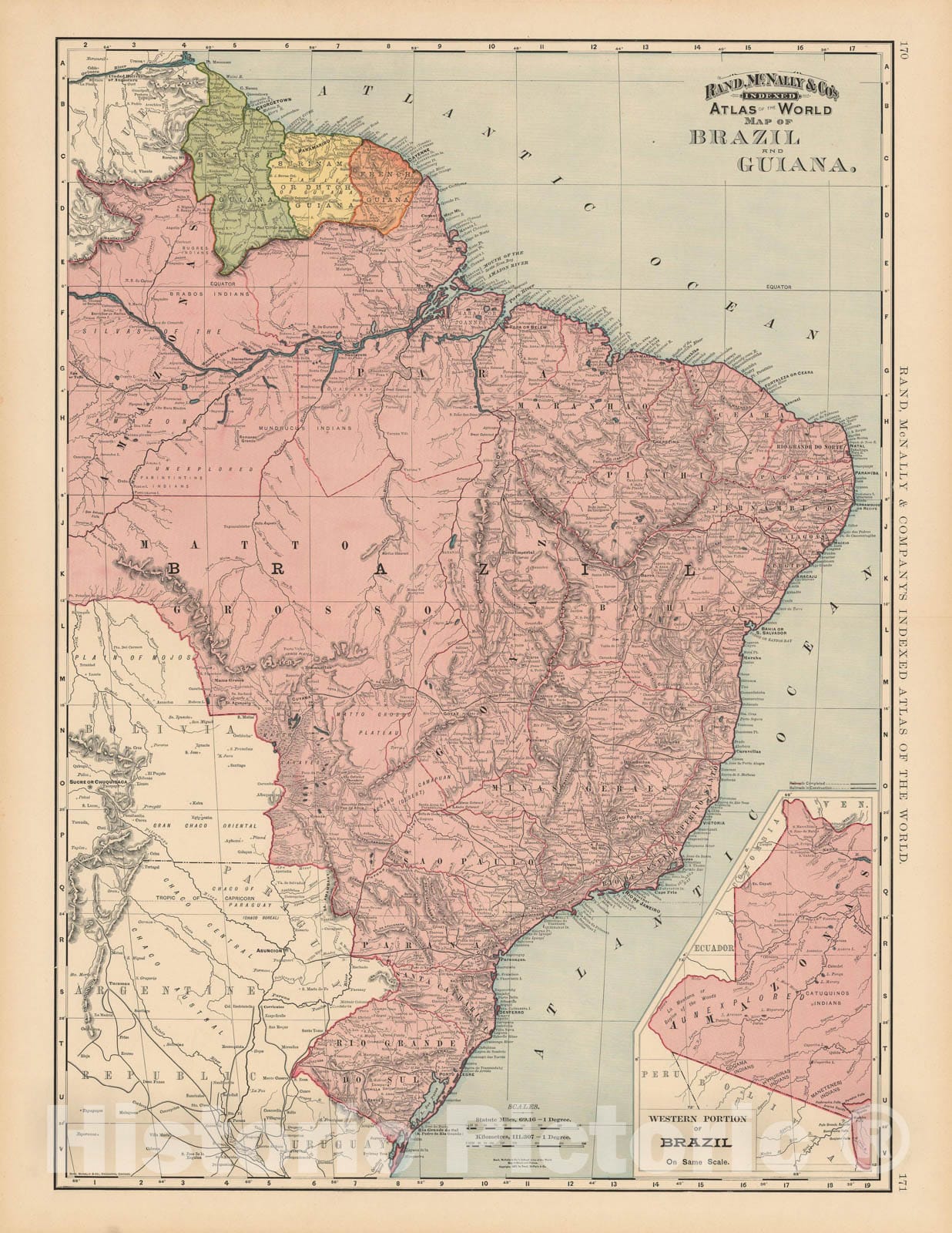 • .Historic Map : Brazil & Guiana 1892 , Rand McNally's Atlas World , Vintage Wall Art