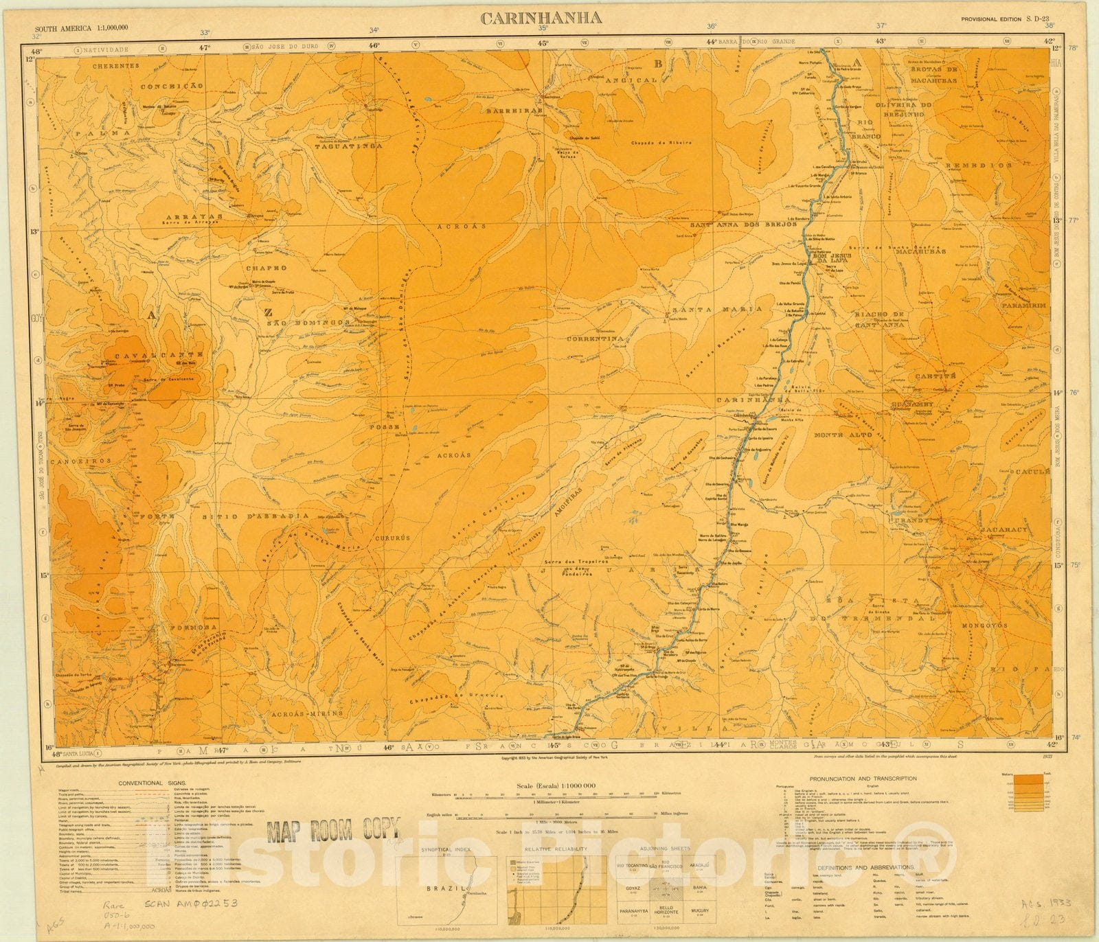 Map : Carinhanha, Brazil 1933, Map of Hispanic America, Antique Vintage Reproduction
