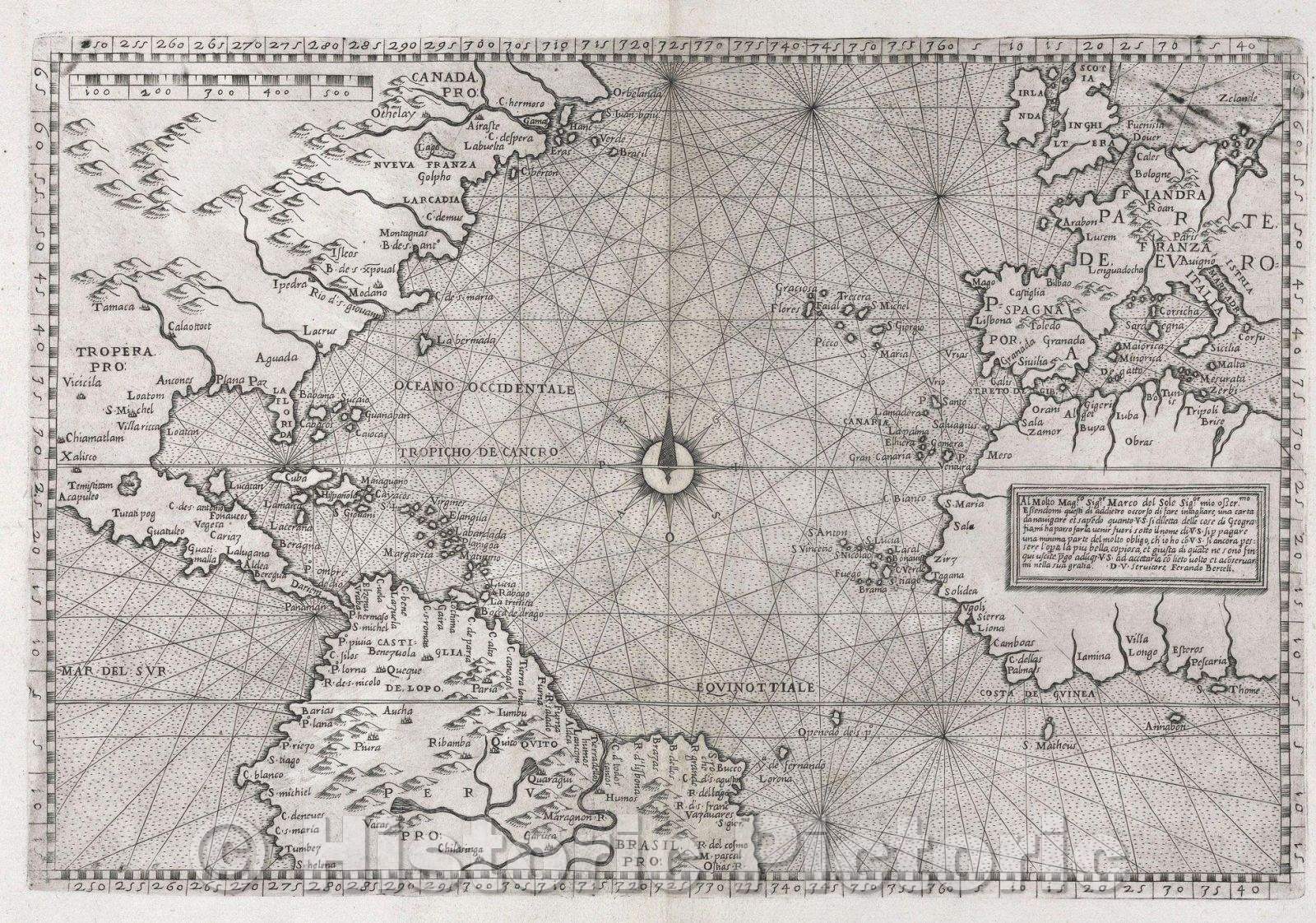 Historic Map : Chart showing America from Labrador to Brazil Fernando Bertelli, 1565 , Vintage Wall Art