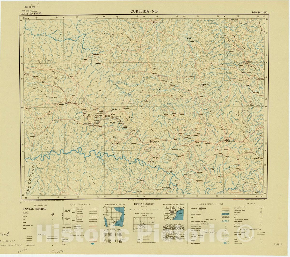 Map : Curitiba - NO, Brazil 1948, Carta do Brasil , Antique Vintage Reproduction