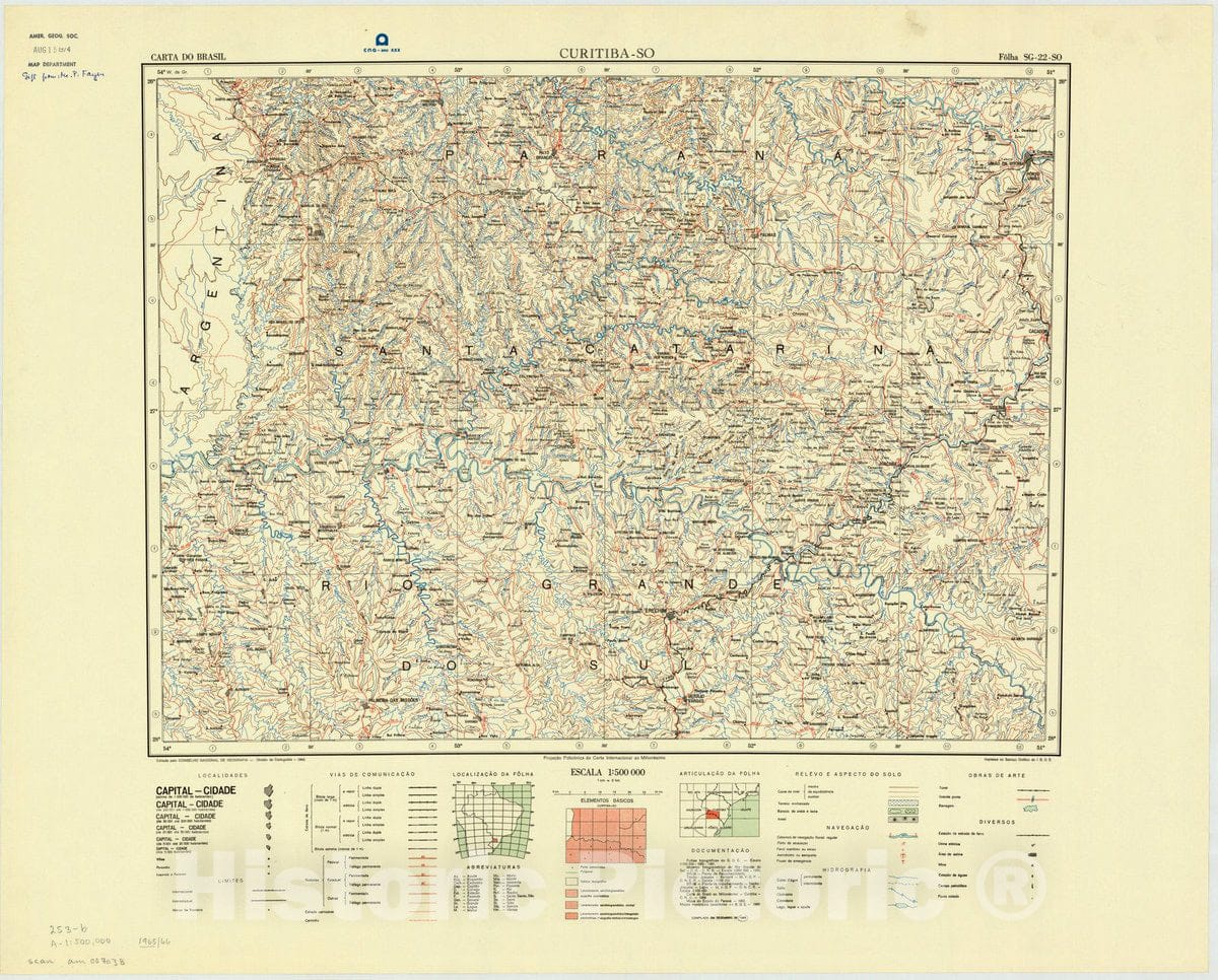 Map : Curitiba - SO, Brazil 1966, Carta do Brasil , Antique Vintage Reproduction