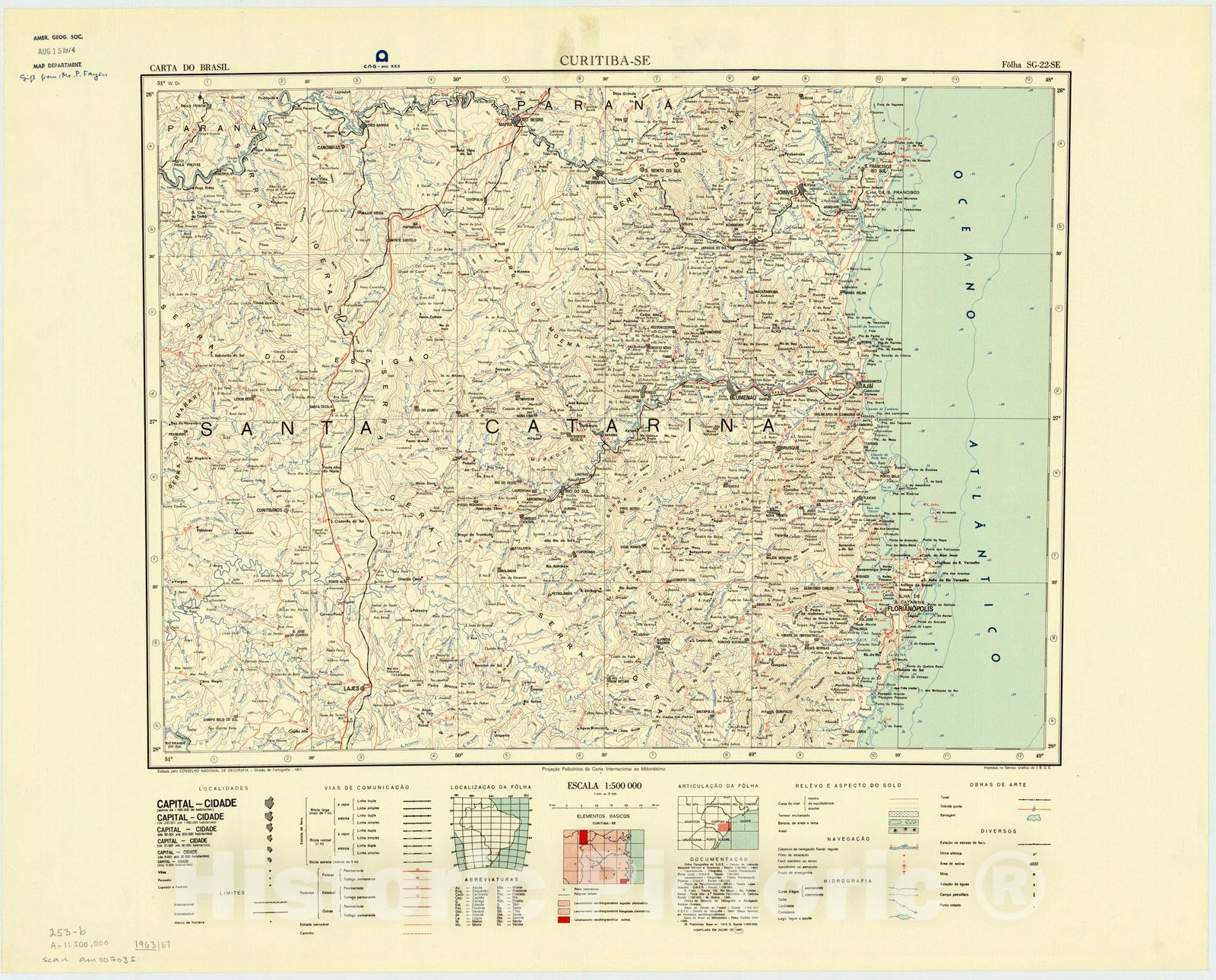 • Map : Curitiba - SE, Brazil 1967, Carta do Brasil , Antique Vintage Reproduction