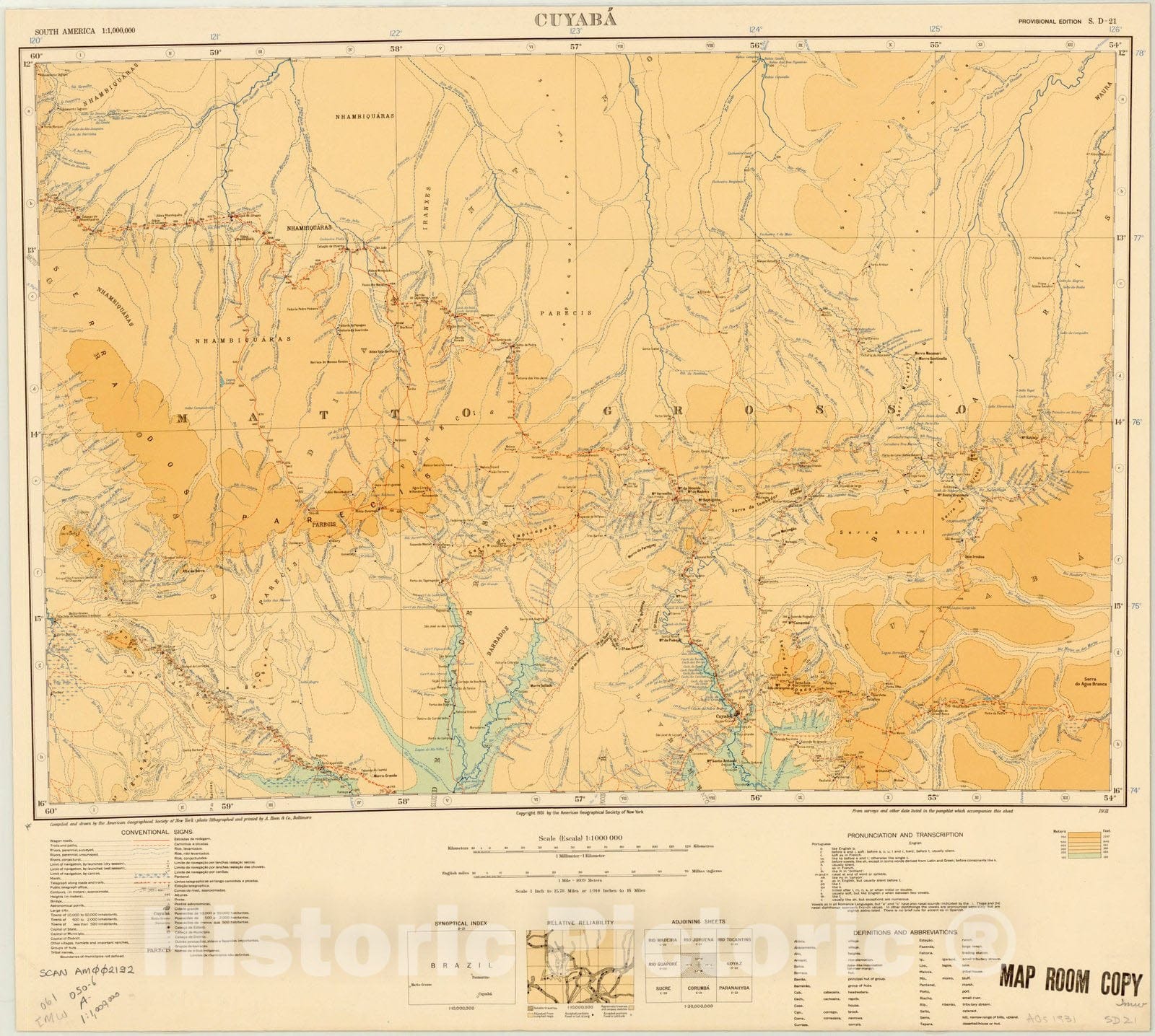 Map : Cuyaba, Brazil 1931, Map of Hispanic America, Antique Vintage Reproduction