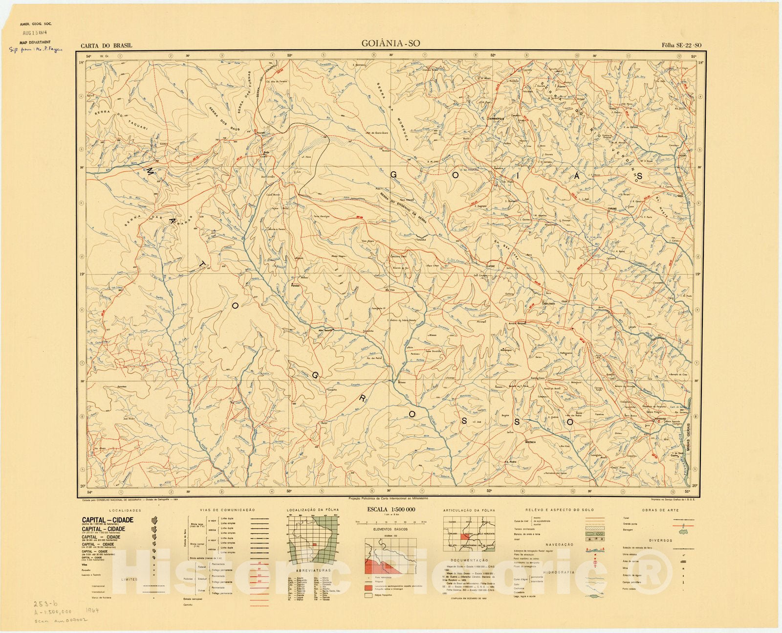 Map : Goiania - SO, Brazil 1964 1, Carta do Brasil , Antique Vintage Reproduction