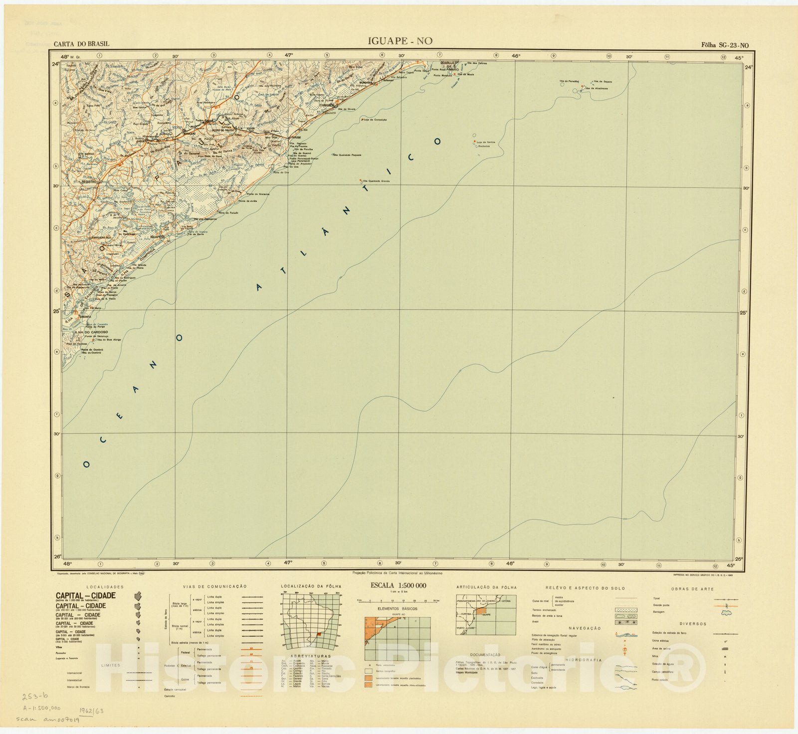 • .Map : Iguape - NO, Brazil 1962, Carta do Brasil , Antique Vintage Reproduction