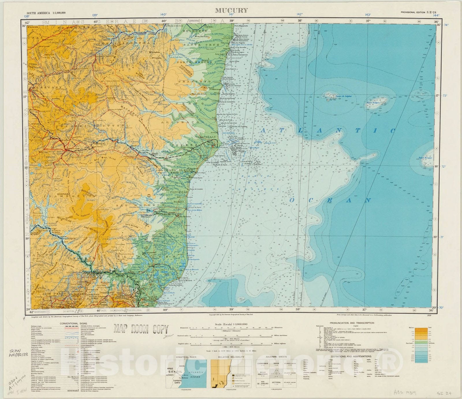 Map : Mucury, Brazil 1939, Map of Hispanic America, Antique Vintage Reproduction