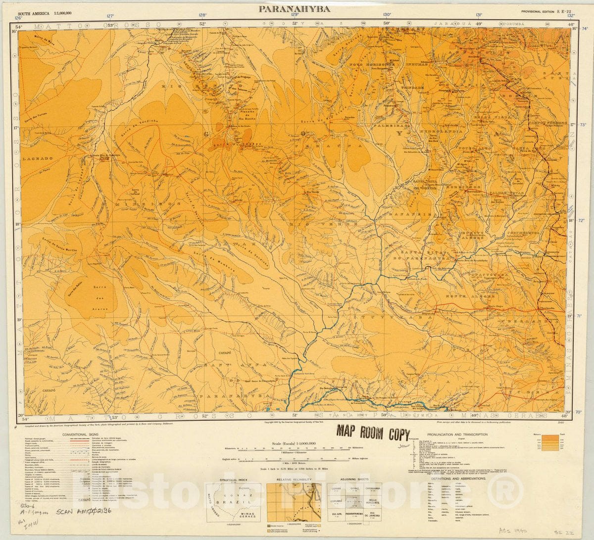 Map : Paranahyba, Brazil 1940, Map of Hispanic America, Antique Vintage Reproduction