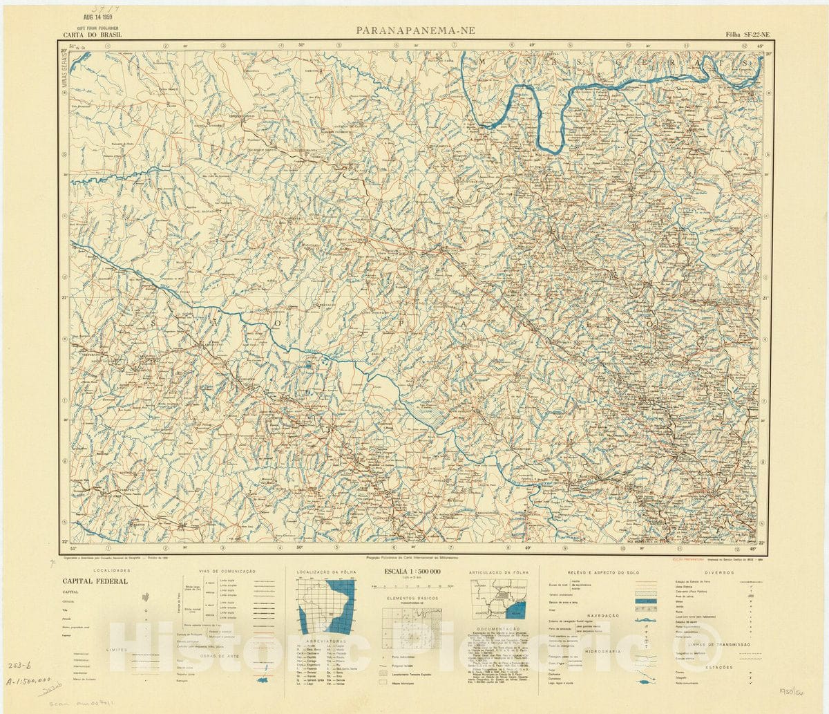 Map : Paranapanema - NE, Brazil 1950, Carta do Brasil , Antique Vintage Reproduction
