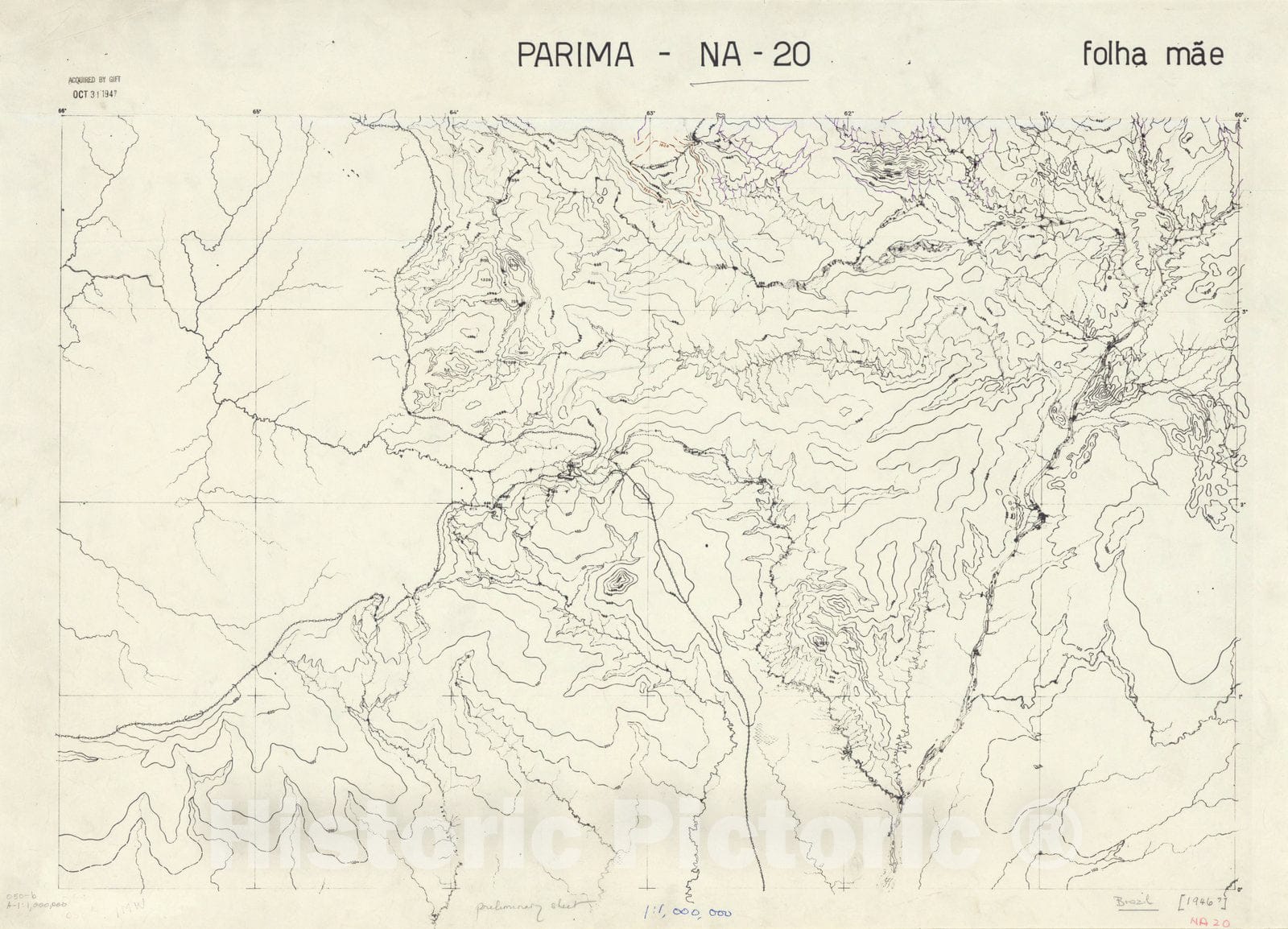 Map : Parima, Brazil 1946, Parima NA 20 , Antique Vintage Reproduction