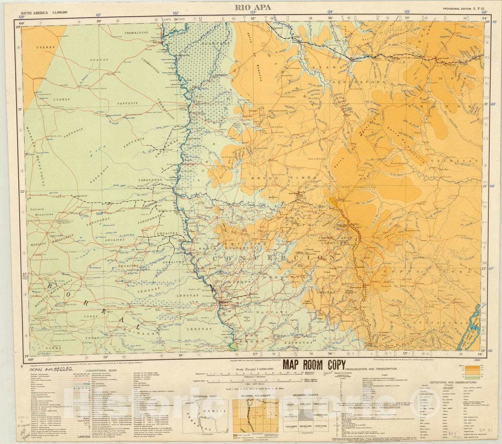 Map : Rio Apa, Brazil 1940, Map of Hispanic America, Antique Vintage Reproduction