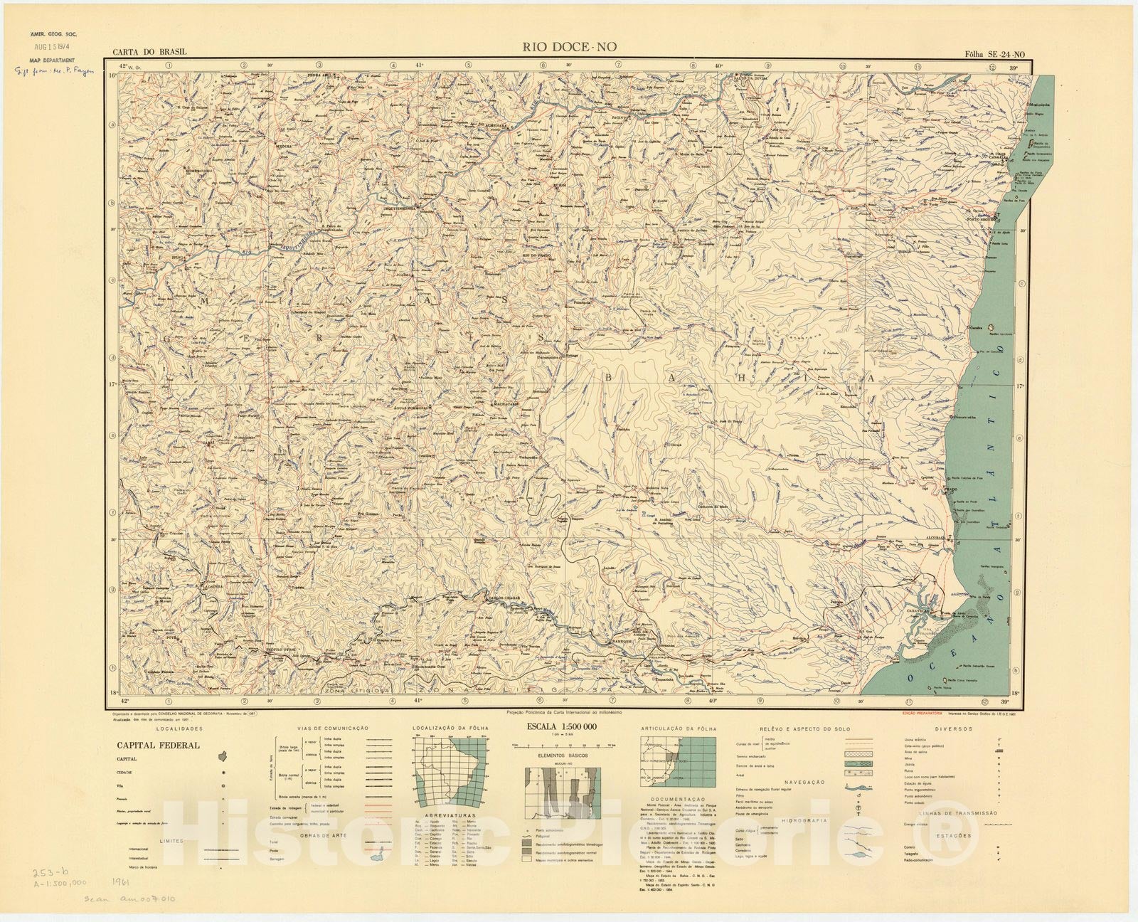• Map : Rio Doce - NO, Brazil 1961, Carta do Brasil , Antique Vintage Reproduction