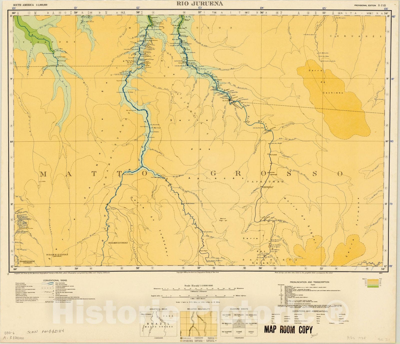 Map : Rio Juruena, Brazil 1935, Map of Hispanic America, Antique Vintage Reproduction