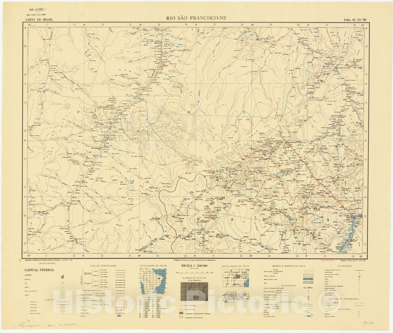 Map : Rio Sao Francisco - NE, Brazil 1951, Carta do Brasil , Antique Vintage Reproduction