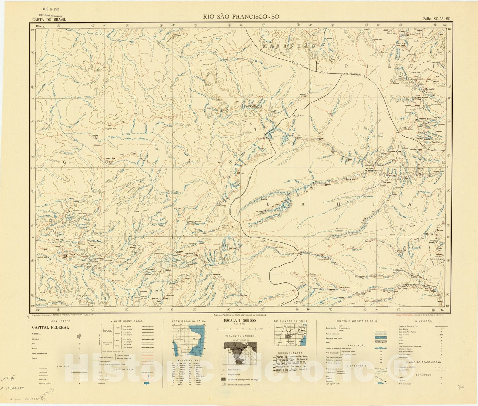 Map : Rio Sao Francisco - SO, Brazil 1954, Carta do Brasil , Antique Vintage Reproduction