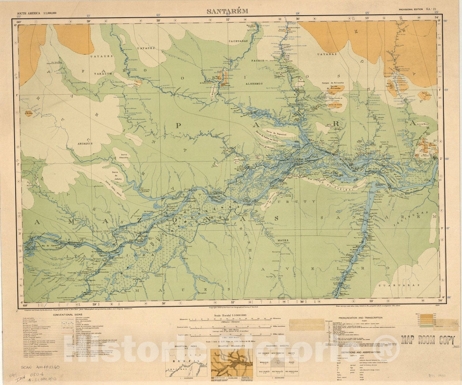 Map : Santarem, Brazil 1930, Map of Hispanic America, Antique Vintage Reproduction