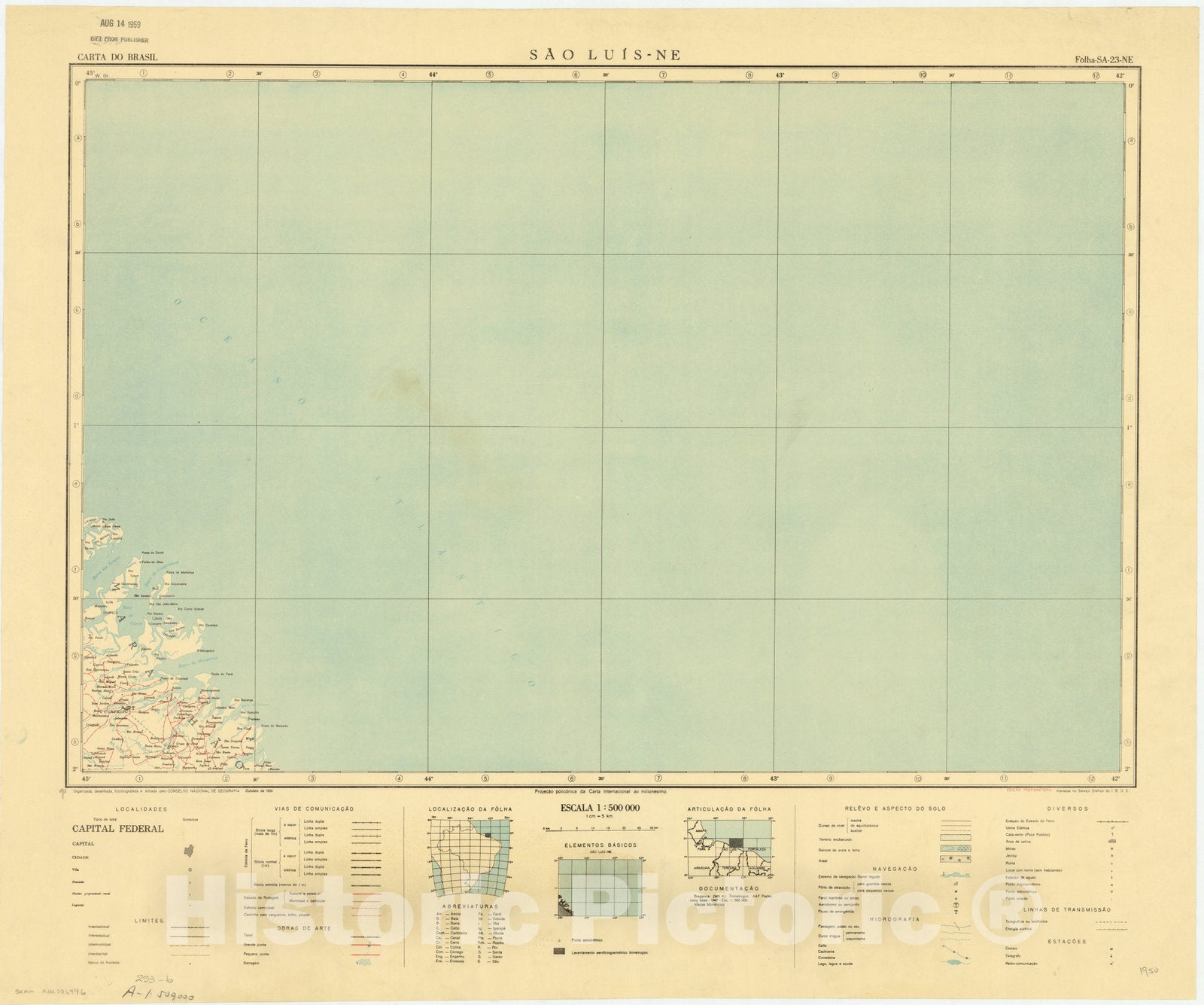 • Map : Sao Luis-NE, Brazil 1950, Carta do Brasil , Antique Vintage Reproduction