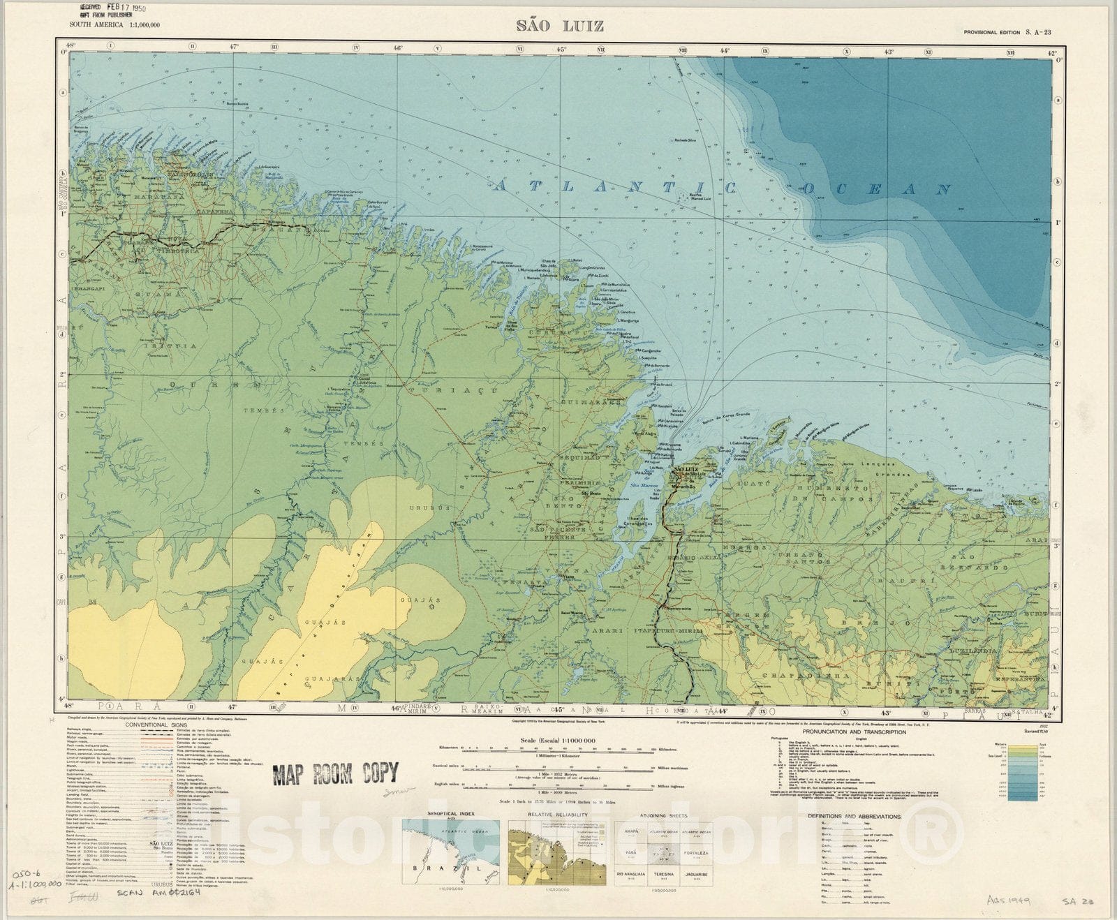 Map : Sao Luiz, Brazil 1950, Map of Hispanic America, Antique Vintage Reproduction