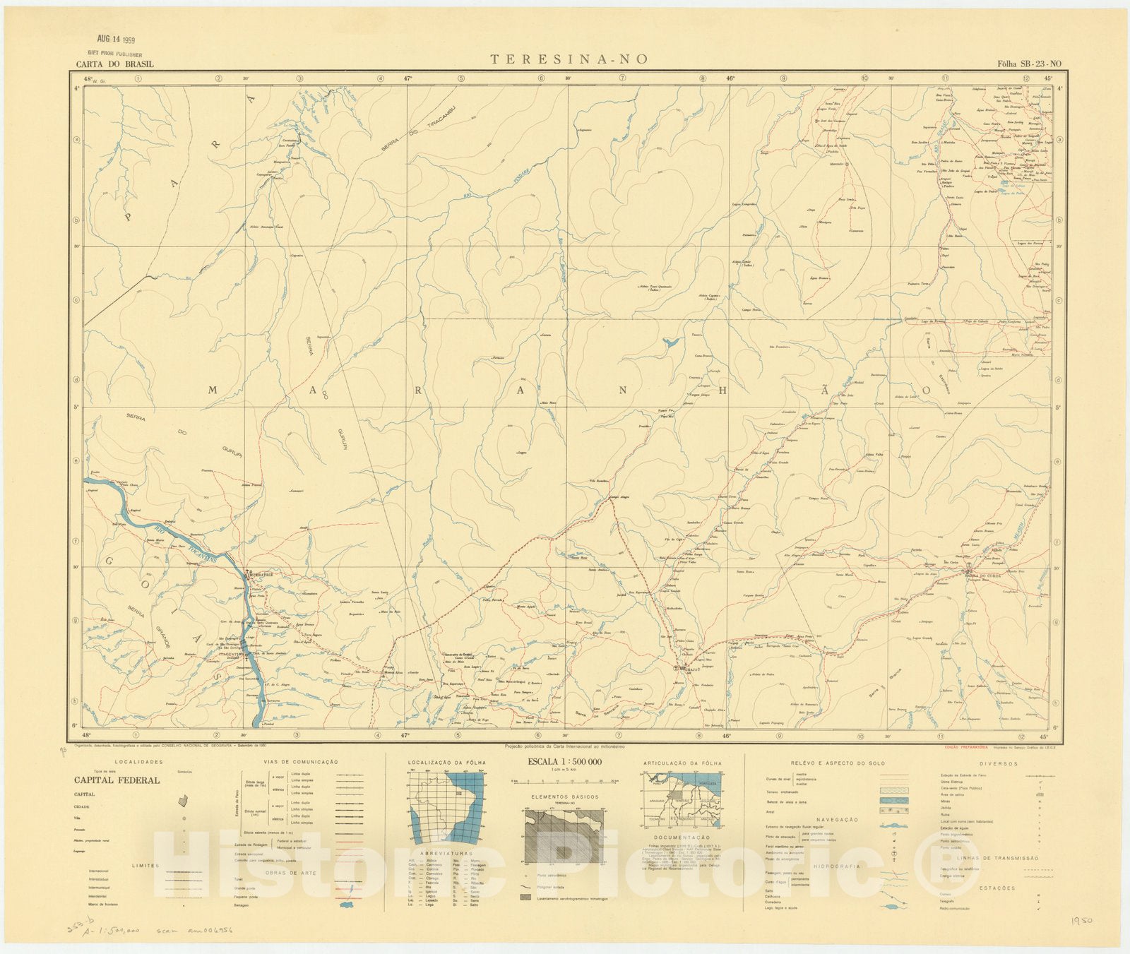 Map : Teresina - NO, Brazil 1950, Carta do Brasil , Antique Vintage Reproduction