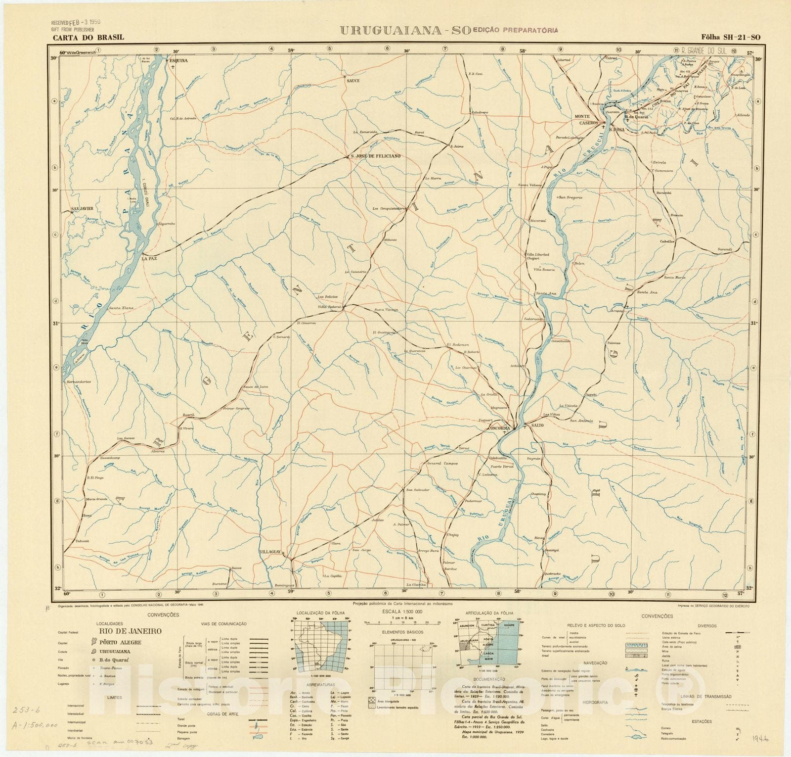 • .Map : Uruguaiana - SO, Brazil 1946, Carta do Brasil , Antique Vintage Reproduction