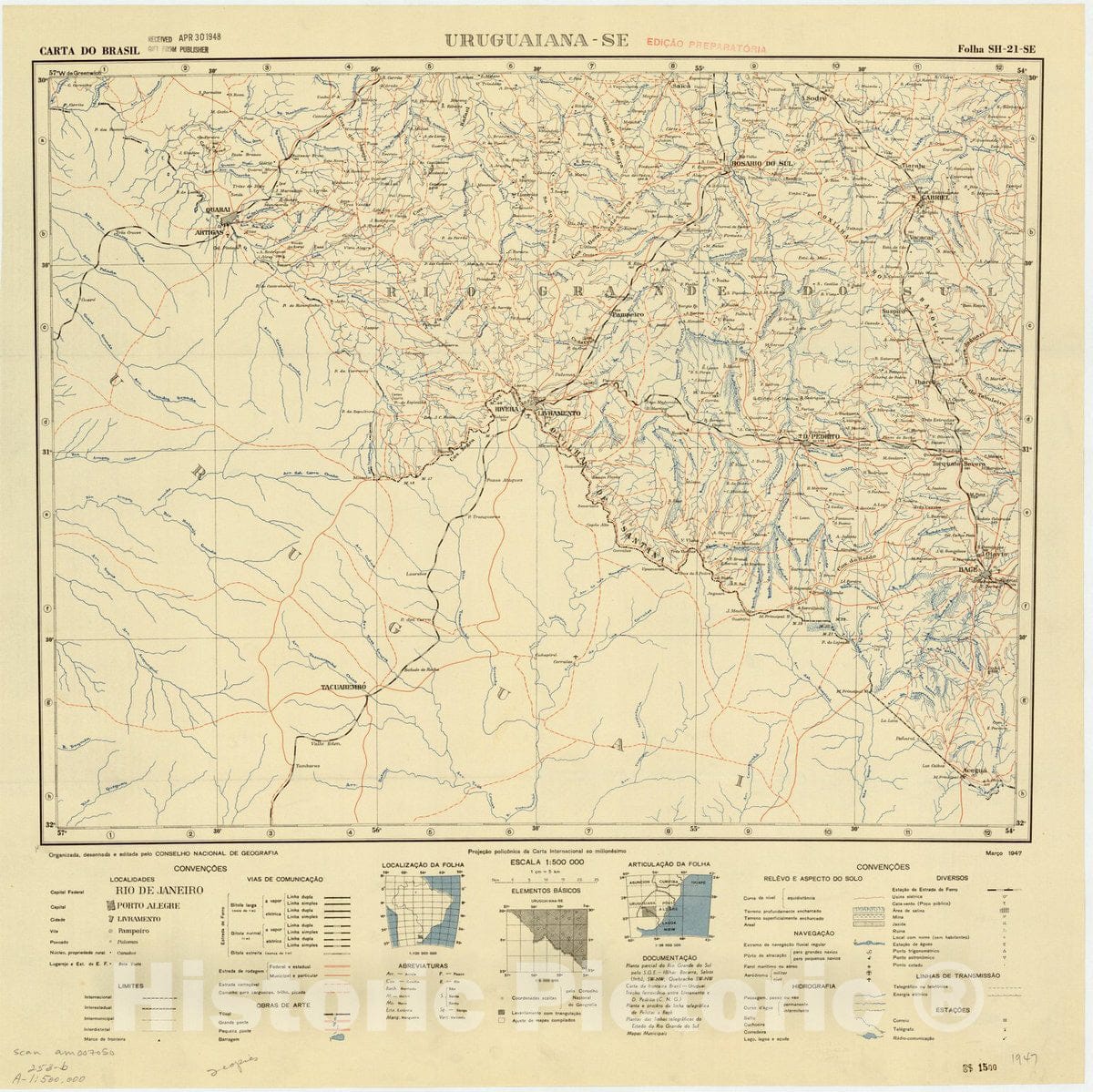 Map : Uruguaiana - SE, Brazil 1947, Carta do Brasil , Antique Vintage Reproduction