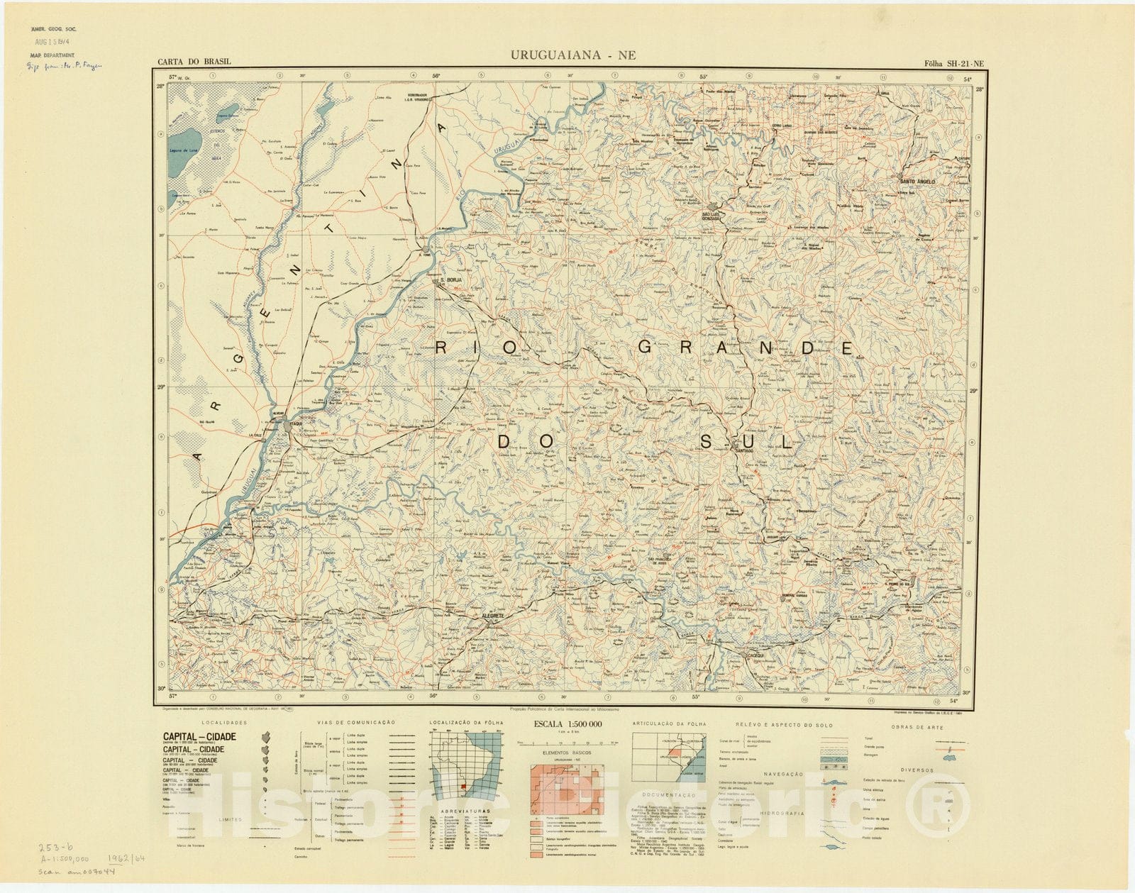 Map : Uruguaiana - NE, Brazil 1962, Carta do Brasil , Antique Vintage Reproduction
