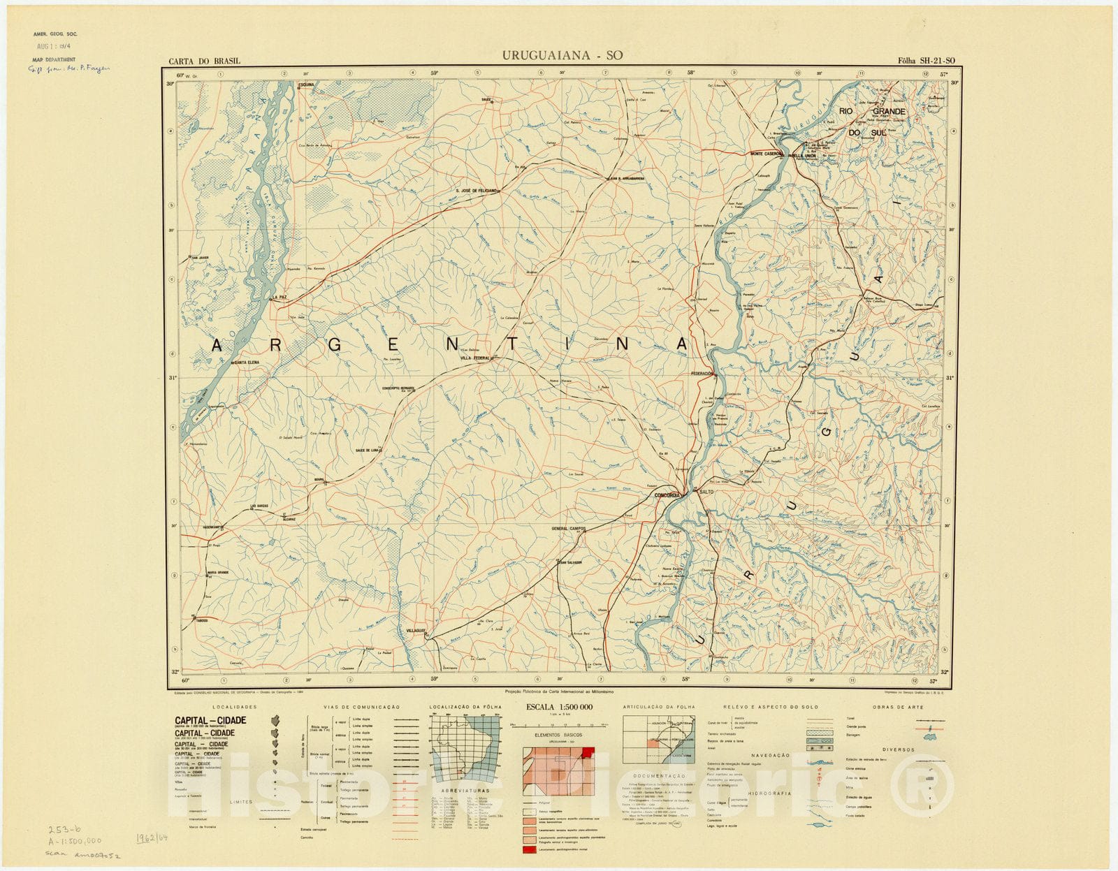 Map : Uruguaiana - SO, Brazil 1964, Carta do Brasil , Antique Vintage Reproduction