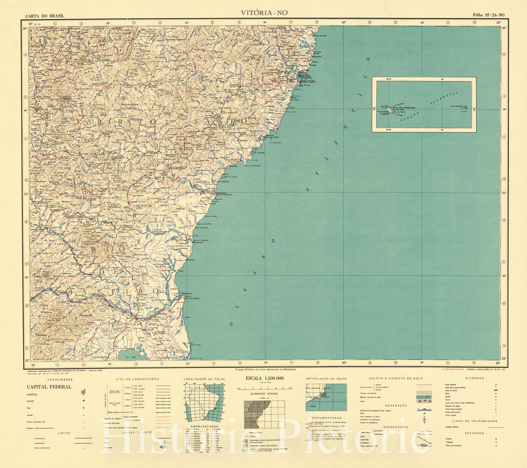 Map : Vitoria - NO, Brazil 1961, Carta do Brasil , Antique Vintage Reproduction