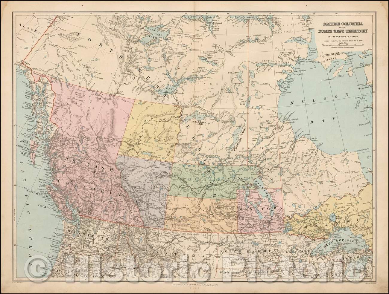 Historic Map - British Columbia and the North West Territory In the Dominion of Canada, 1896, Edward Stanford - Vintage Wall Art