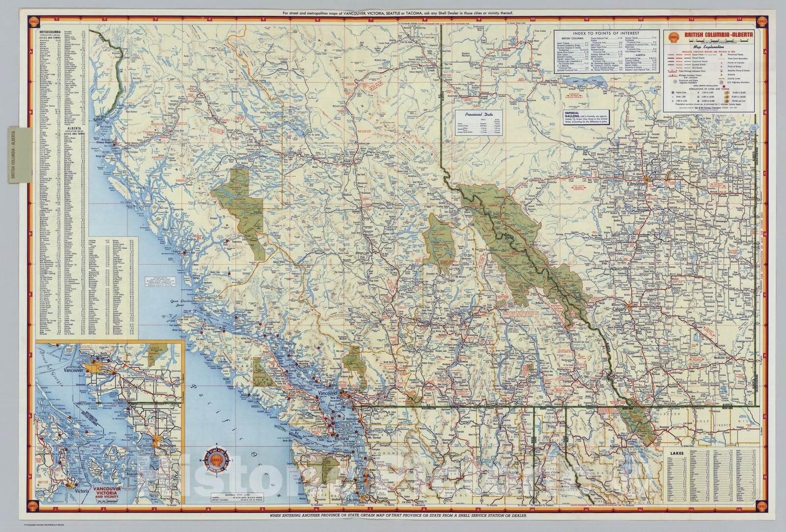 Historic Map : National Atlas - 1956 Shell British Columbia - Alberta. - Vintage Wall Art