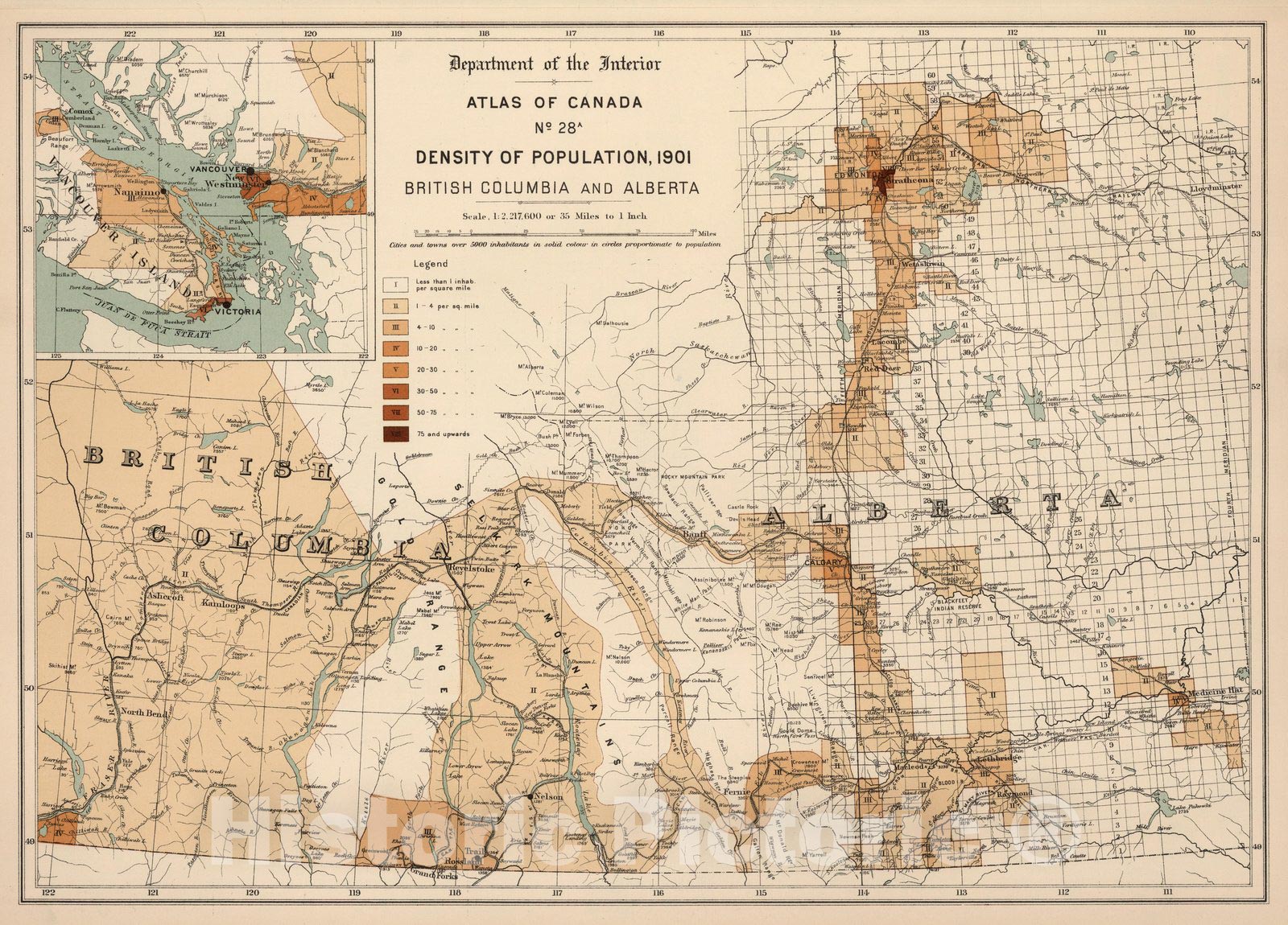Historic Map : No. 28 A, Density of population, 1901; British Columbia and Alberta 1906 - Vintage Wall Art