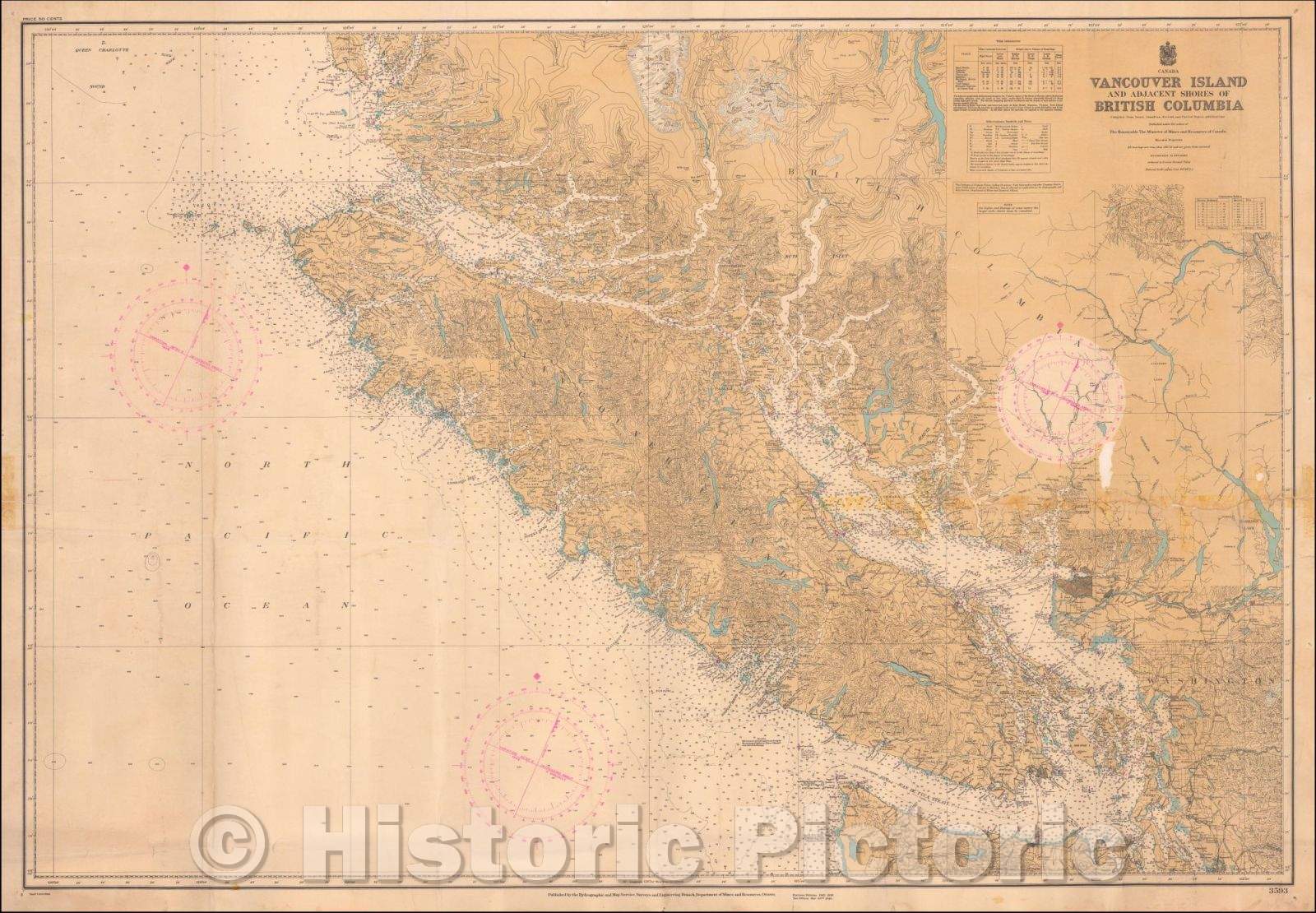 Historic Map - Vancouver Canada and Adjacent Shores of British Columbia, 1948, Department of Mines and Resources - Vintage Wall Art
